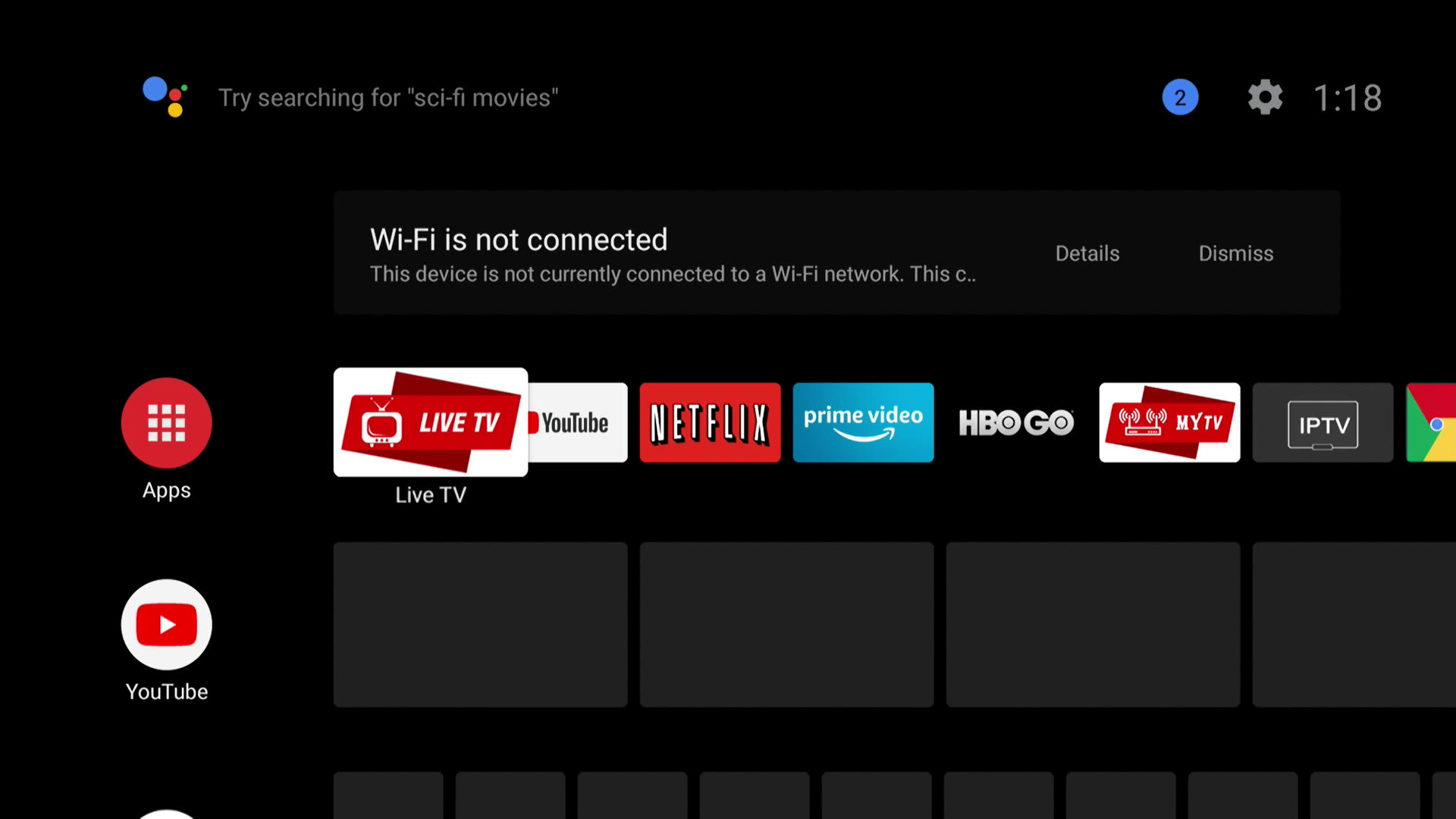 1. Una vez que el receptor a arrancado el receptor en Android-TV pulsamos sobre el icono LIVE TV