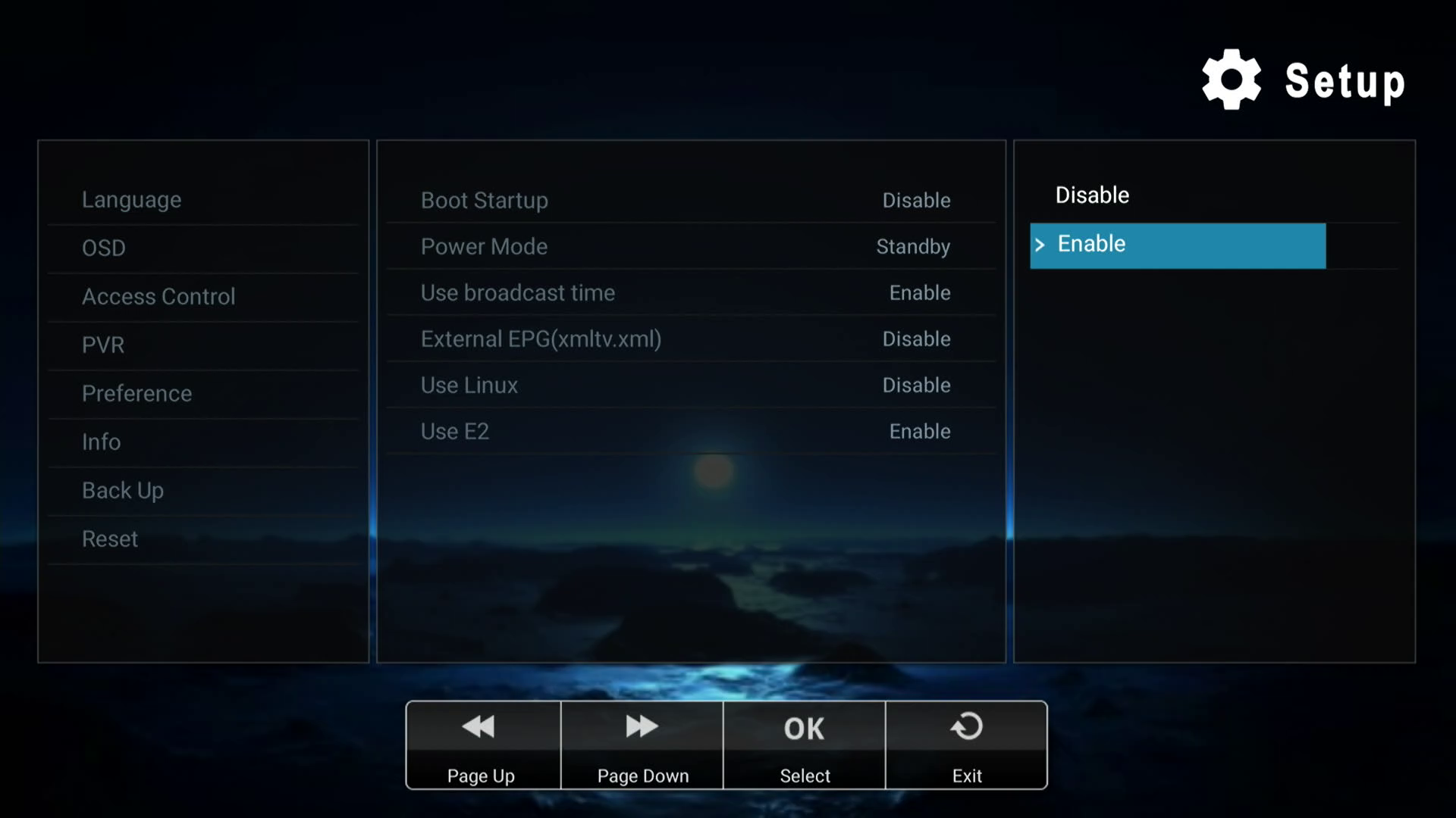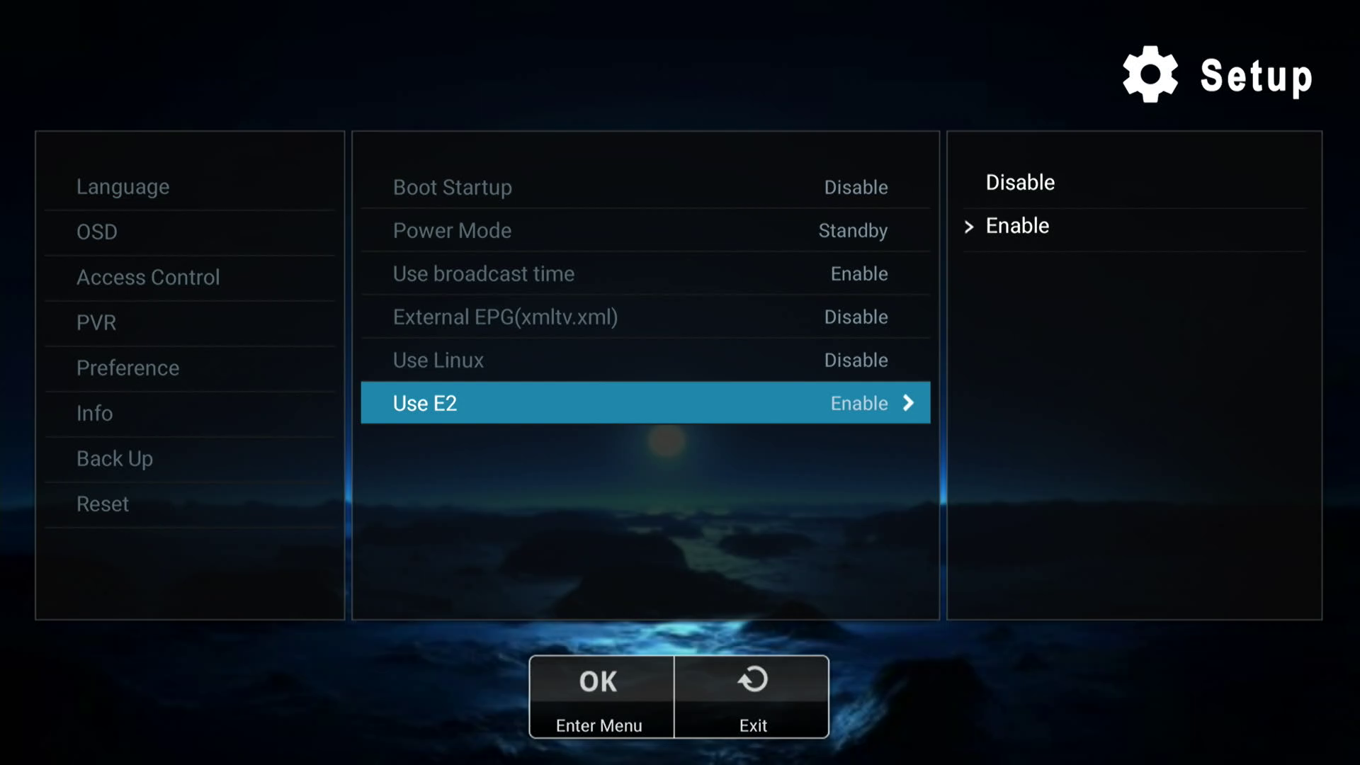 Por defecto el receptor viene instalado solamente la particion Android TV-Box, por lo que en primer lugar para poder instalar una imagen Enigma2 y luego poder arrancarla, es necesario activar Enigma2 en el menu Android, para ello seguriremos estos pasos.