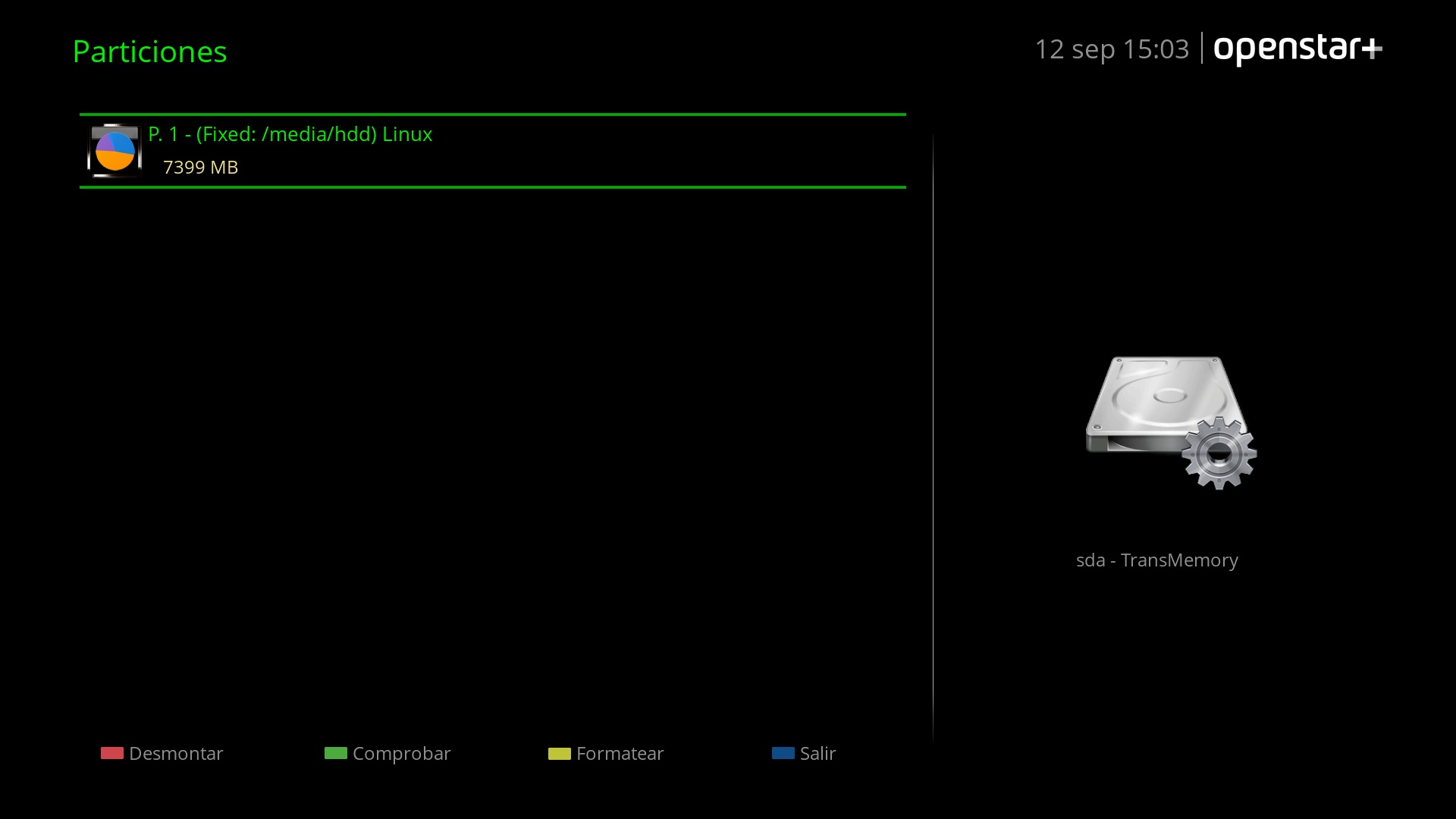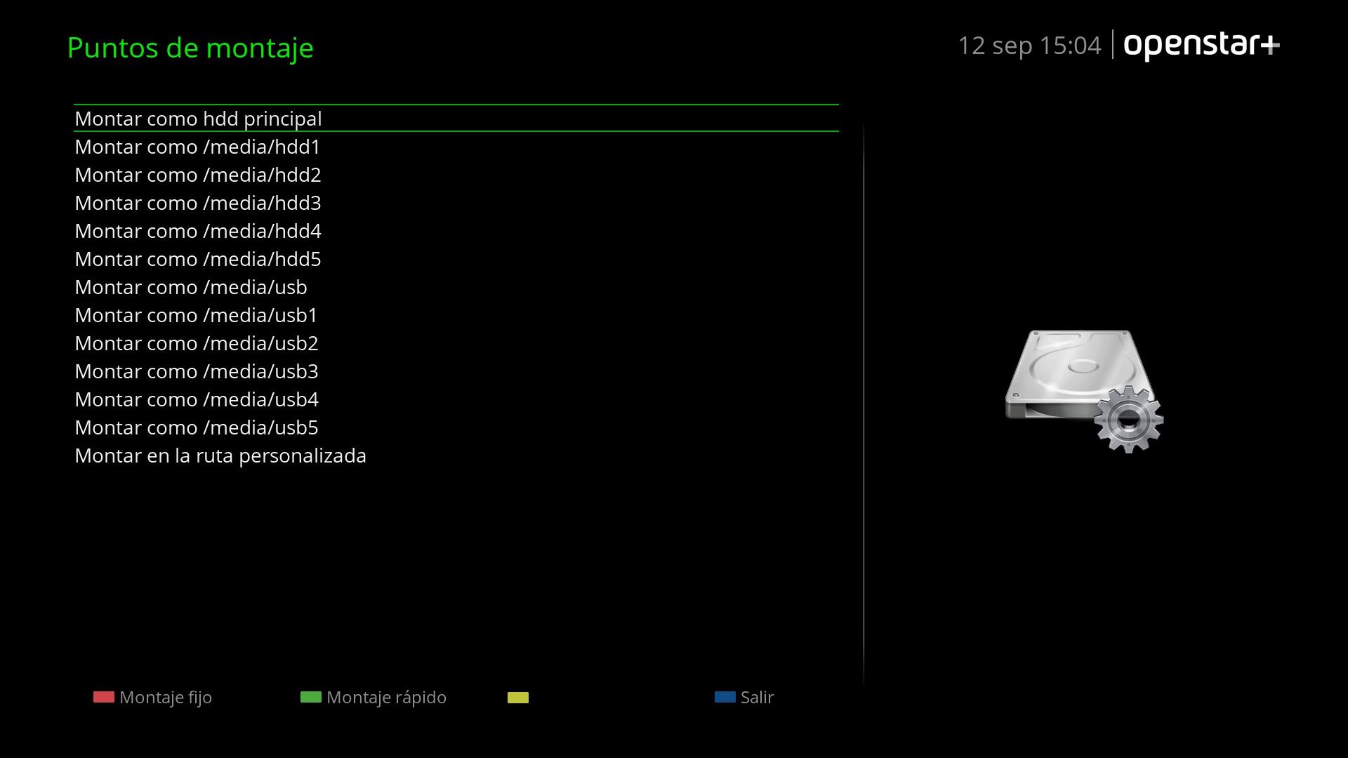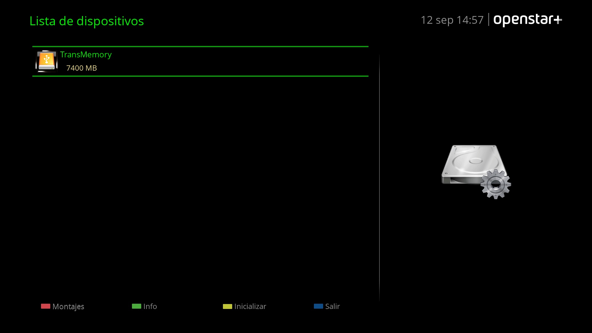 Nos apareceran en la interfaz resultante las unidades que tenemos insertadas en nuestro receptor, ahora vamos a ver como montar, desmontar y formatear esta unidad en el caso que lo deseemos.