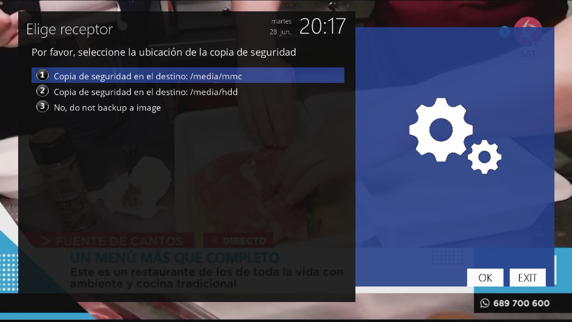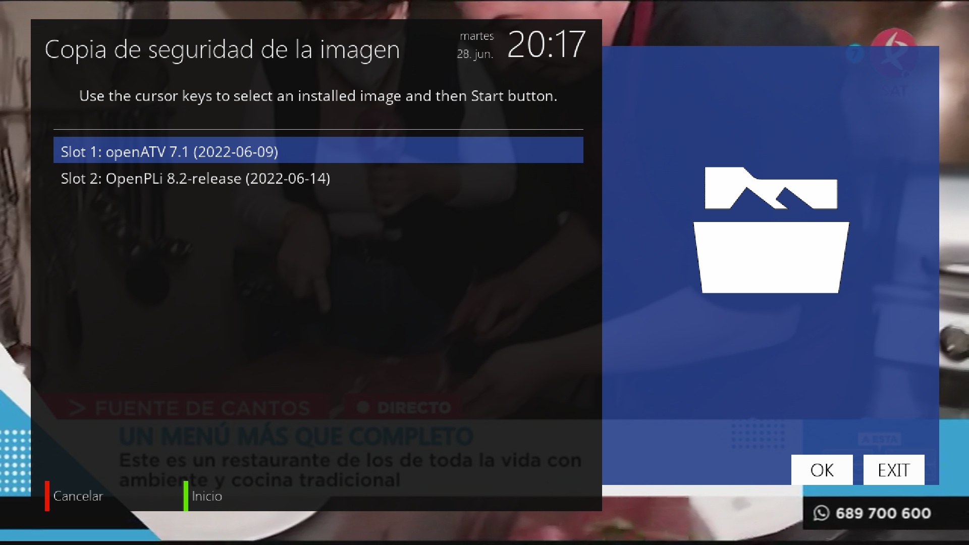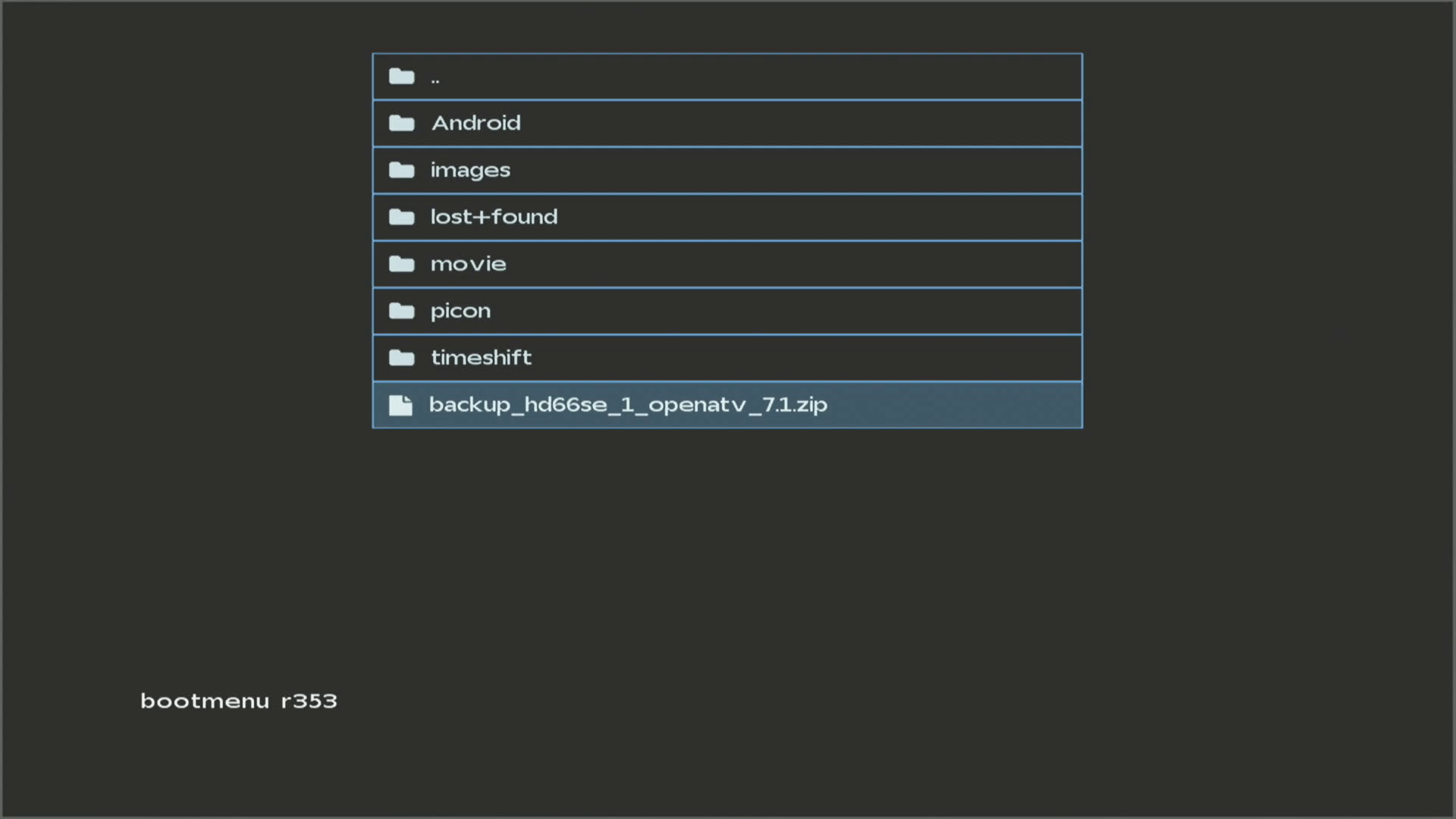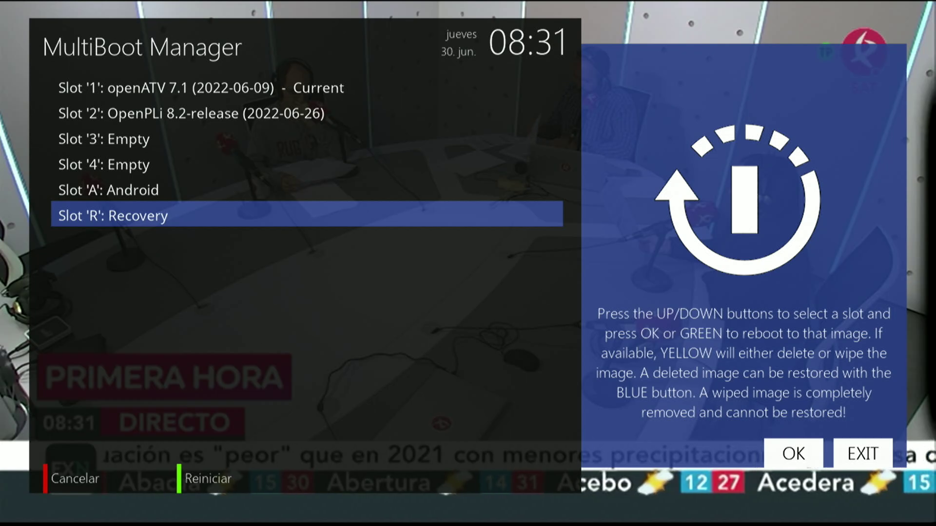 2. Seleccionamos la opcion recovery y pulsamos OK, el receptor se reiniciara en modo recovery