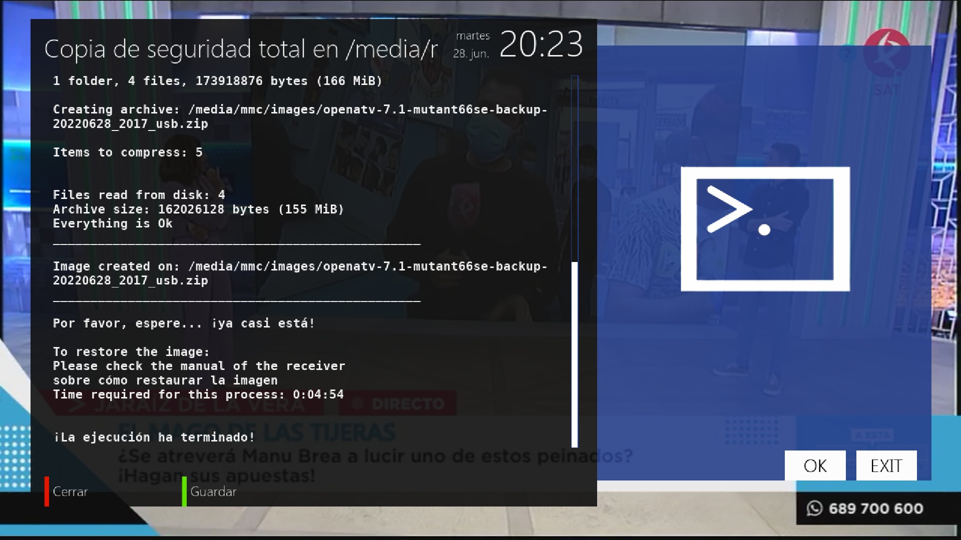 Al finalizar nos aparecera el siguiente mensaje de fin de realizacion de backup