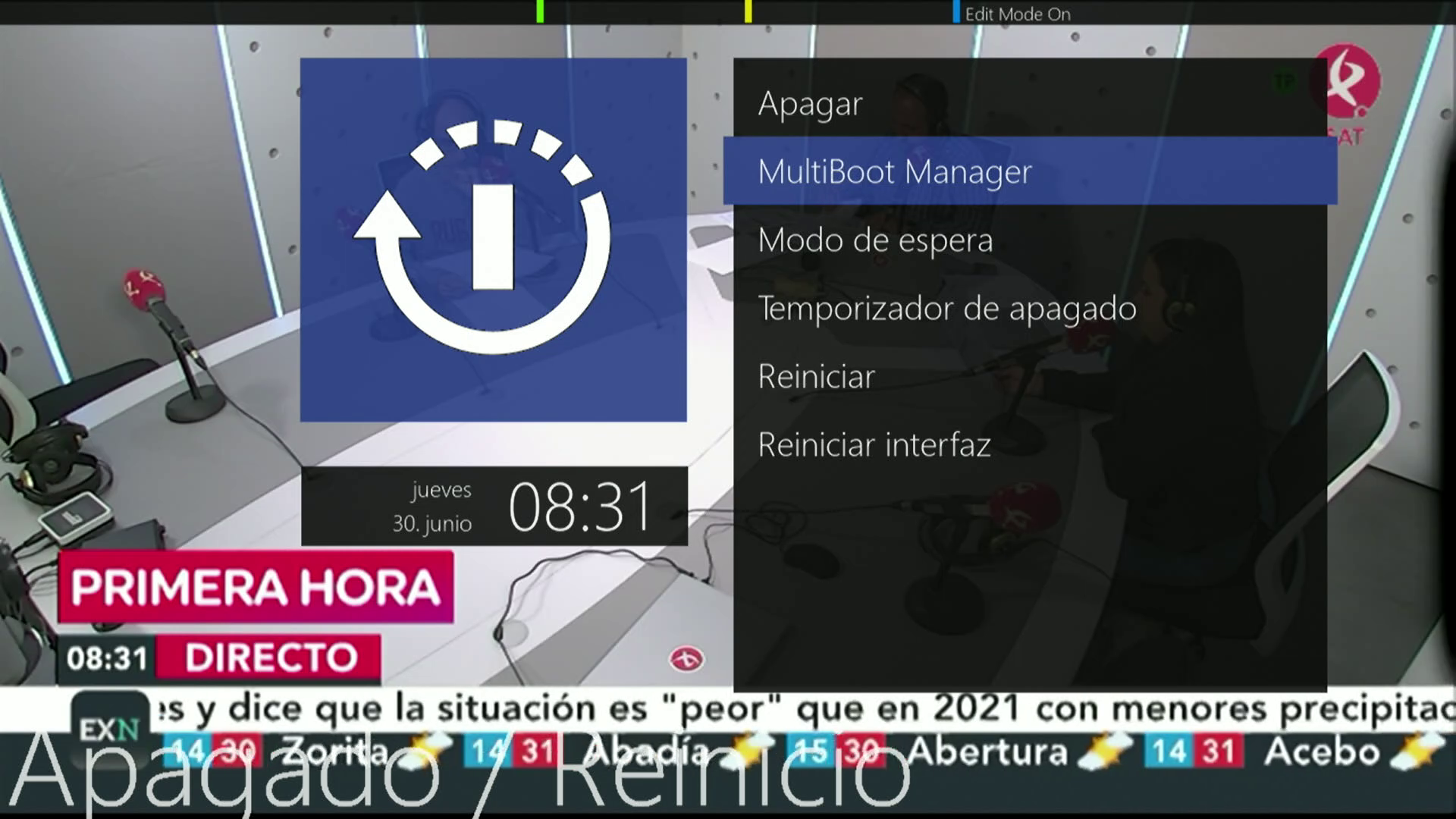 1. Pulsamos en menu apagado + Multiboot Manager