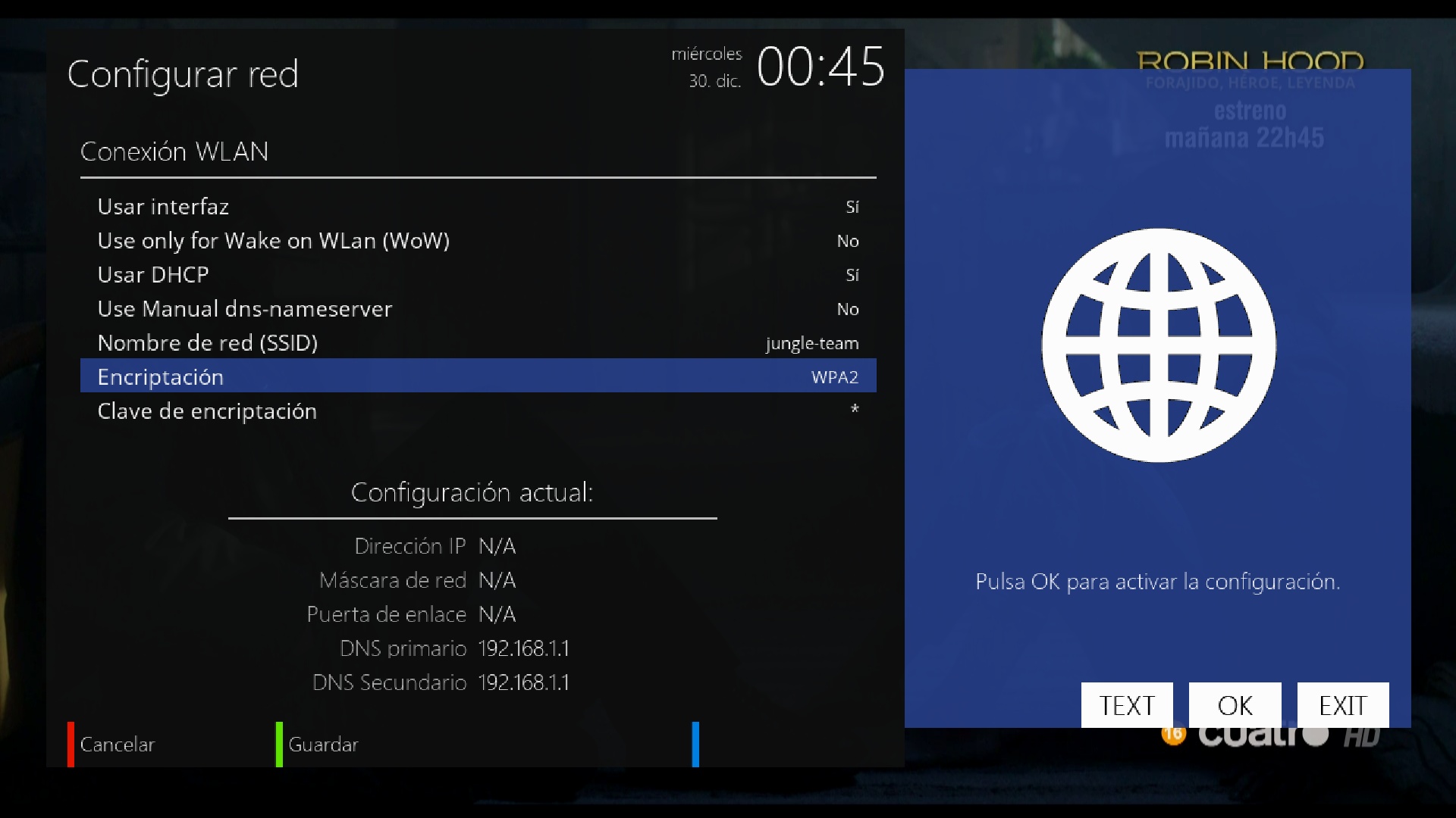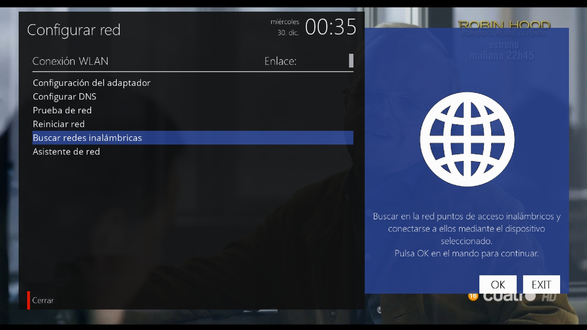 En este ejemplo lo vamos a realizar con imagen OpenATV, para ello pulsamos en menu + configuracion + sistema + red y selecionamos conexion Wlan