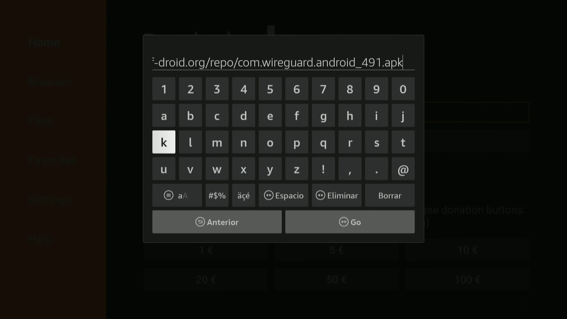 Wireguard no esta disponible su instalacion en Fire TV stick 4K Max desde su app Store, por lo que debemos realizar la instalacion externamente, para ello lo podemos realizar facilmente usando la app downloader que instalamos previamente desde App Store y a continuacion realizamos los siguientes pasos: