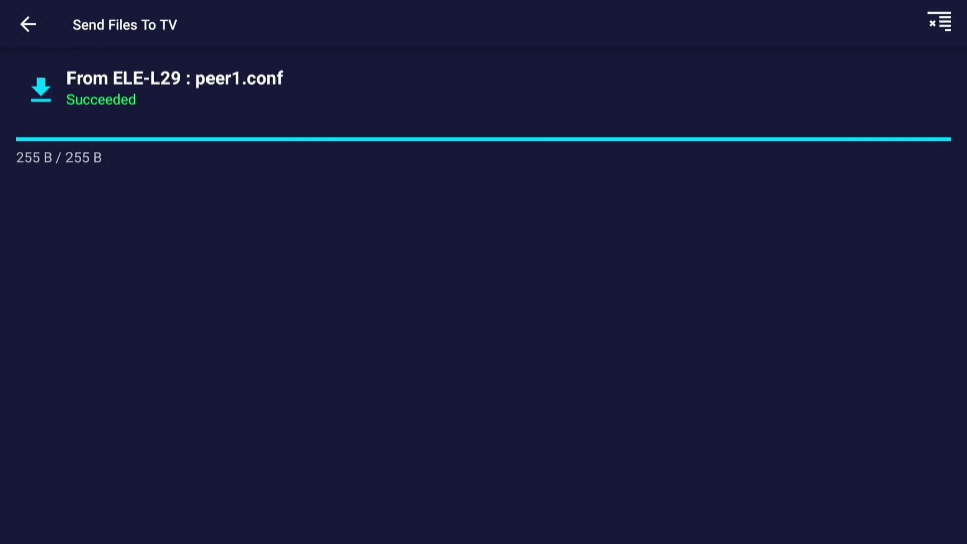 Abrimos en el movil y en la fire stick send to files y en el movil le damos a send y seleccionamos el archivo configuracion de wireguard y lo recibira la fire.