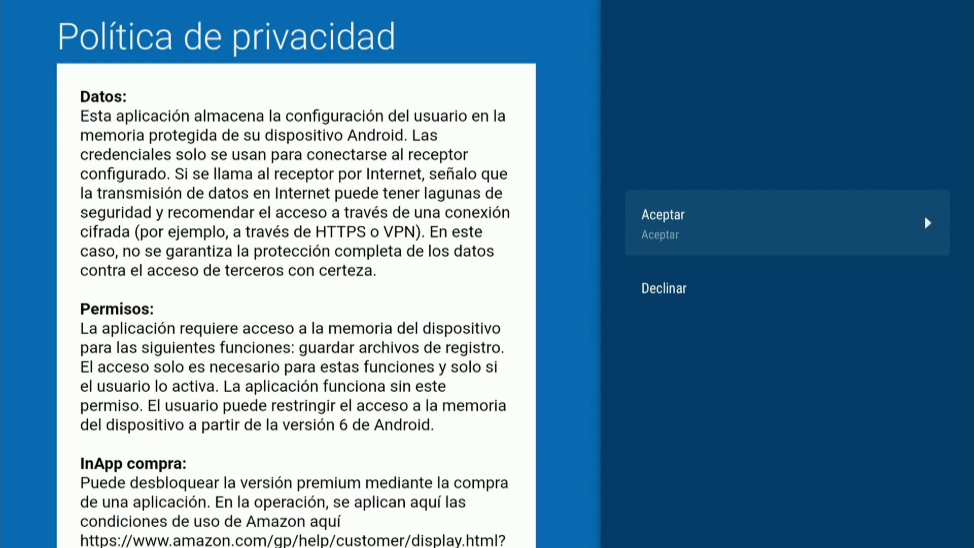 1. Una vez abierta por primera vez pulsamos en siguiente y aceptamos la politica de privacidad