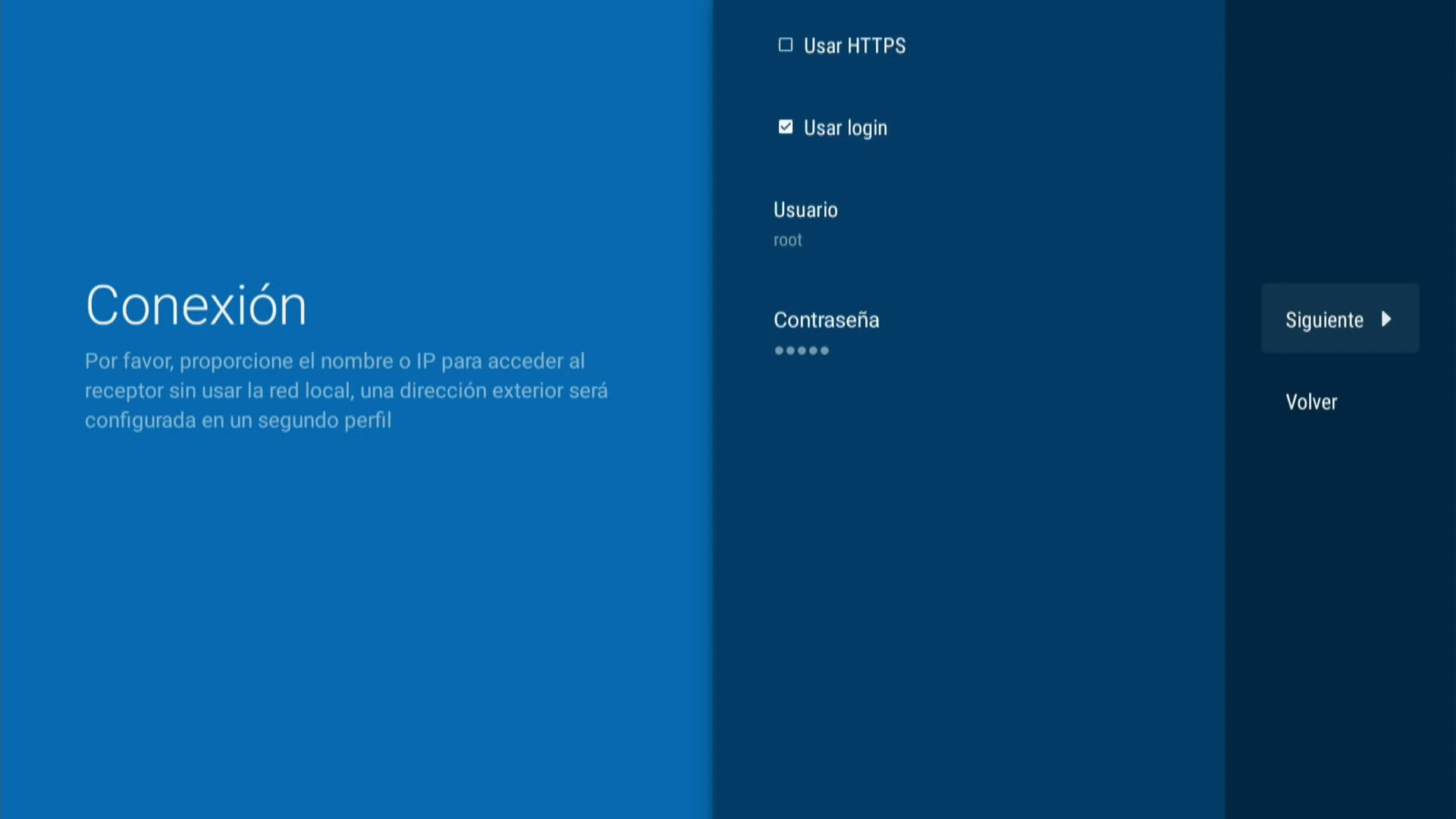3. Ahora activamos usar login y en contraseña introducimos la contraseña de nuestro receptor y pulsamos en siguiente