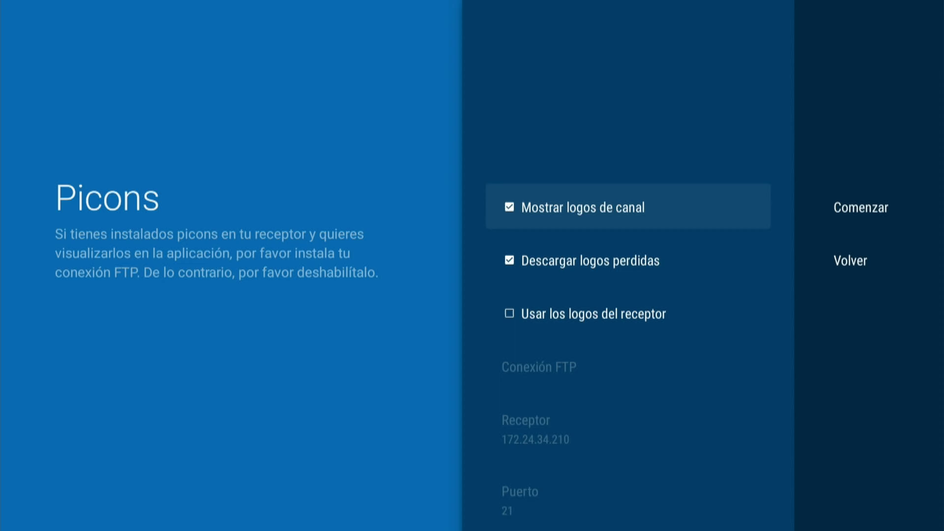 5. Ahora marcamos si queremos usar picones para la lista canales y en su caso si deseamos usar los del receptor y pulsamos en siguiente