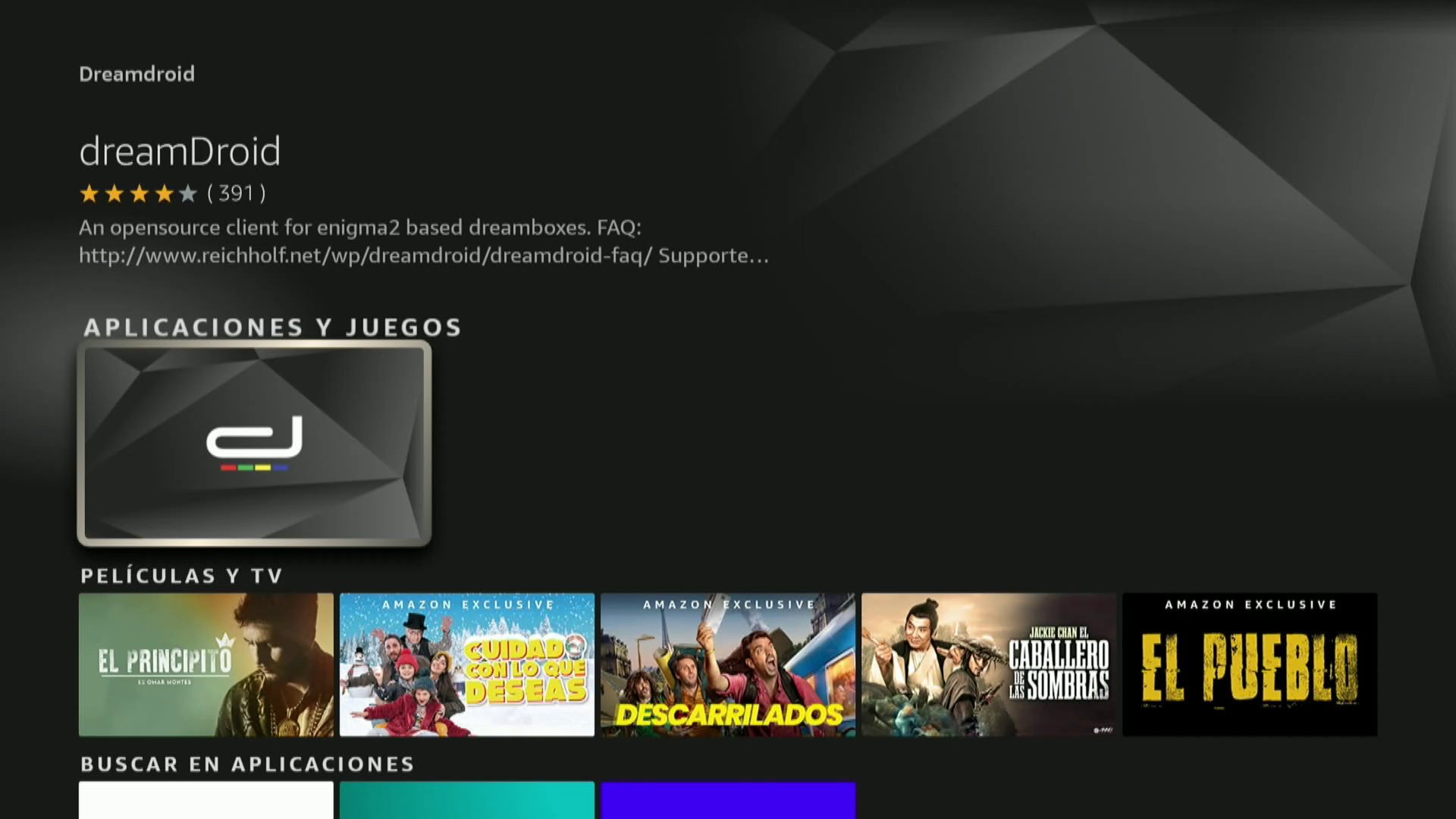 1. Instalamos DreamDroid desde la appstore de nuestra fire stick 4K Max