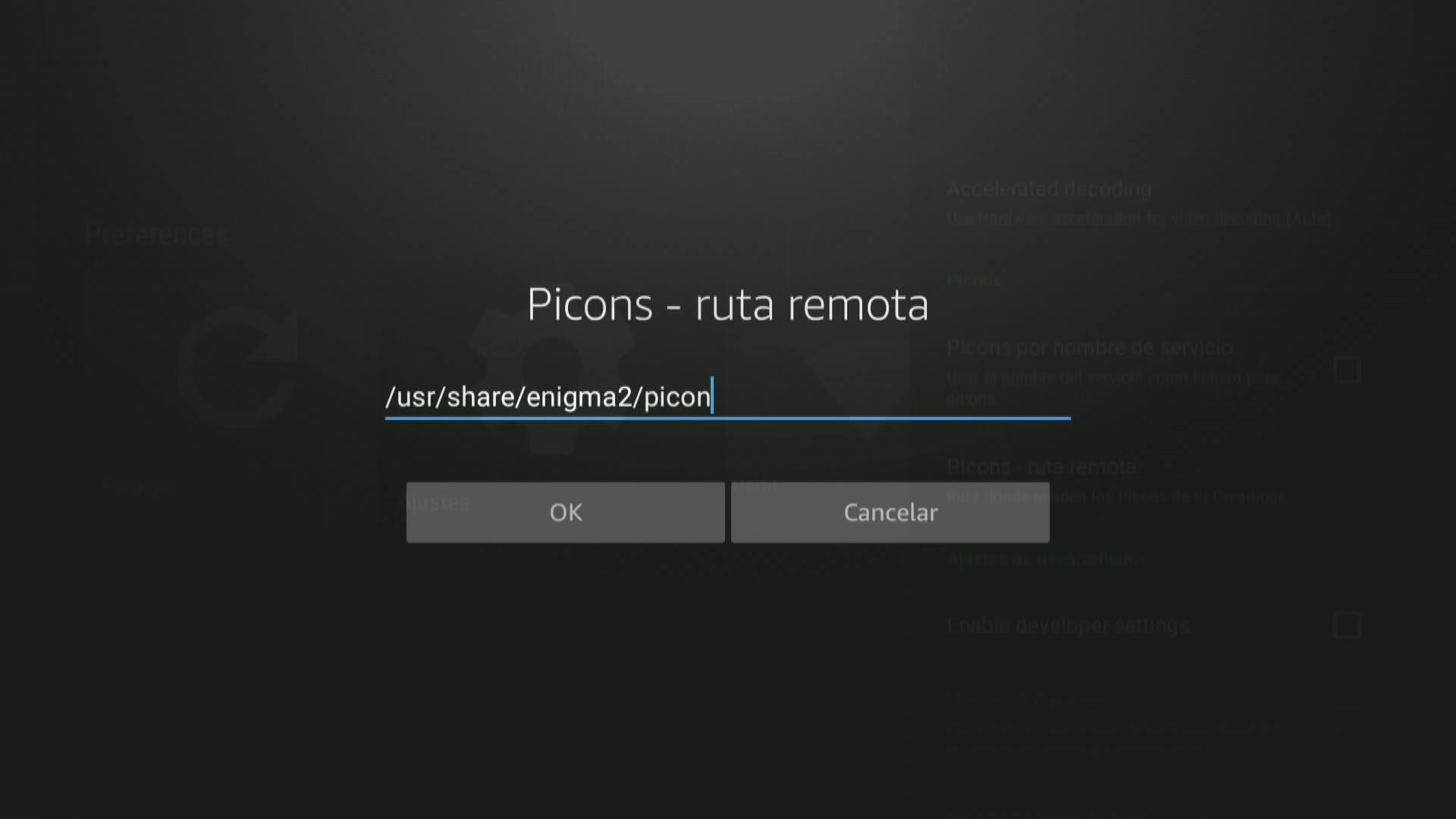 - Picon – Ruta remota: Pulsamos ok para introducir la ruta en el deco donde tengamos puestos los picones