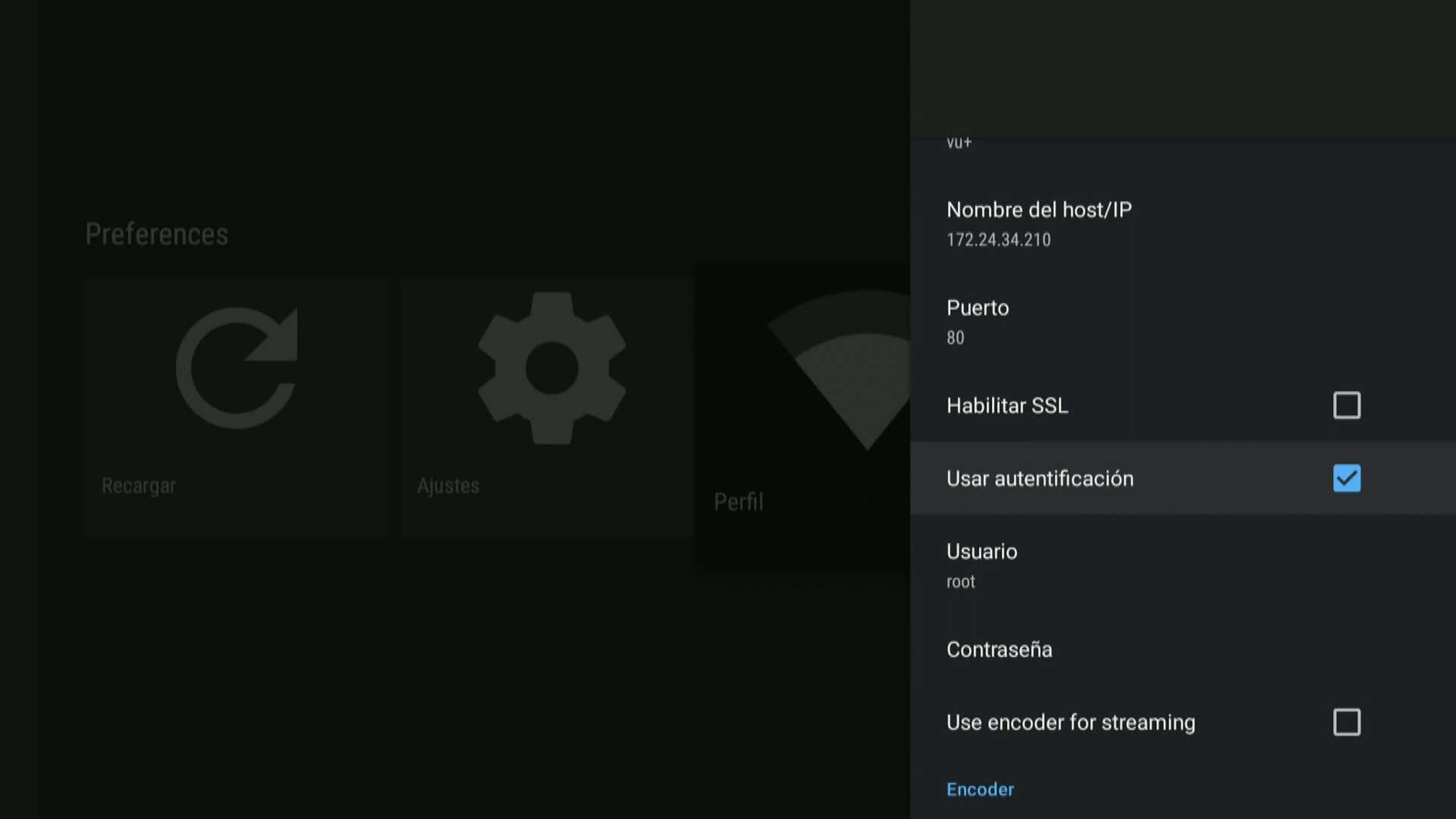 7. Activamos usar autentificacion y en contraseña introducimos la contraseña de nuestro receptor enigma2