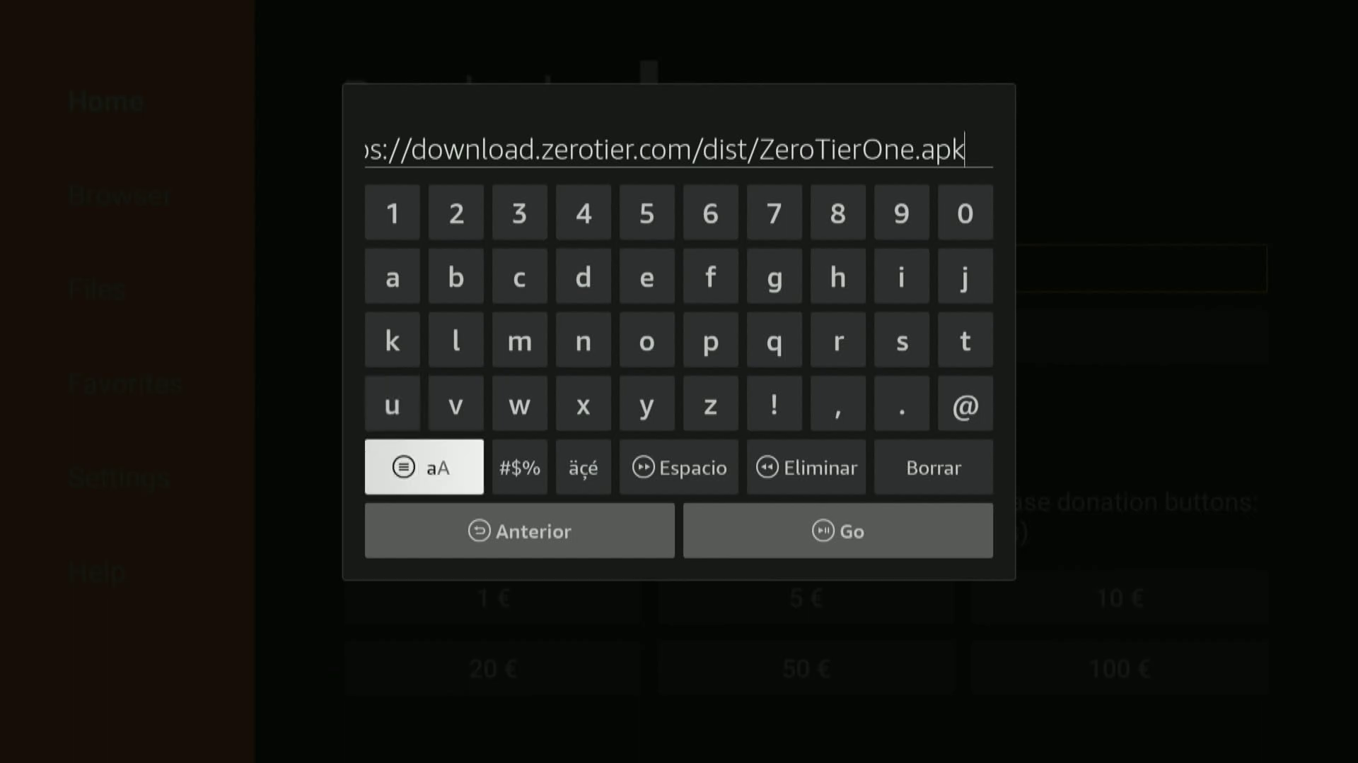 Zerotier no esta disponible su instalacion en Fire TV stick 4K Max desde su app Store, por lo que debemos realizar la instalacion externamente, para ello lo podemos realizar facilmente usando la app downloader que instalamos previamente desde App Store y a continuacion realizamos los siguientes pasos: