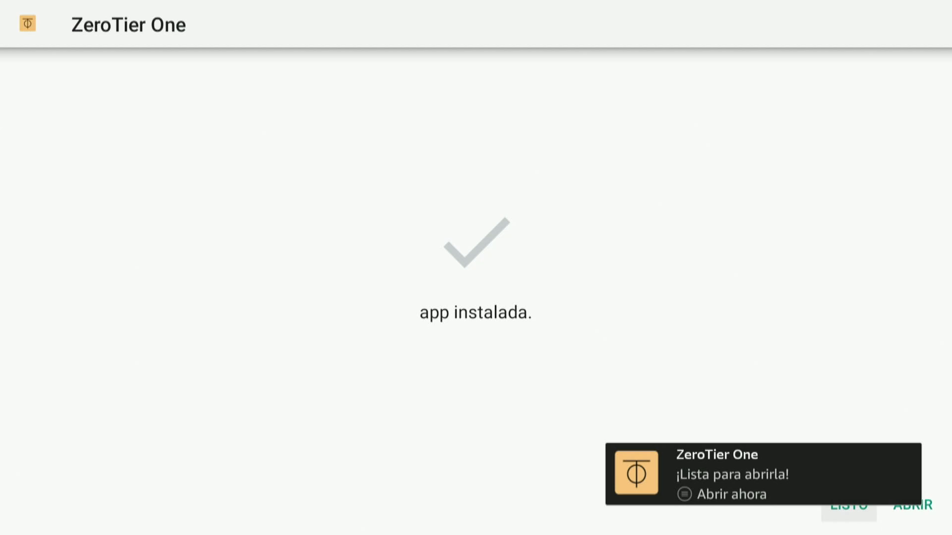 Una vez instalado nos aparecera zerotier en nuestra lista de app instaladas