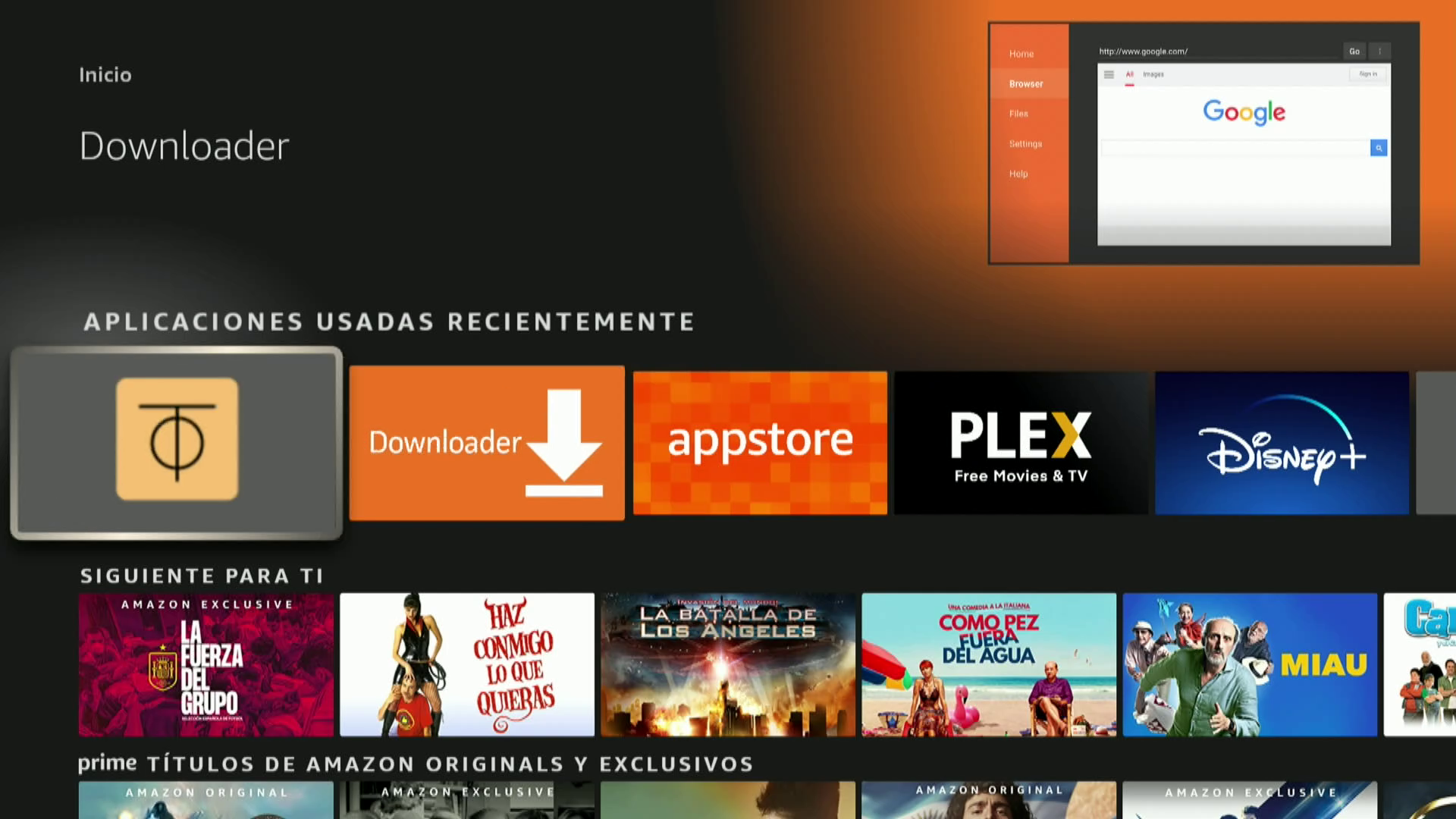 1. Una vez hemos instalado la app Downloader seleccionamos la app