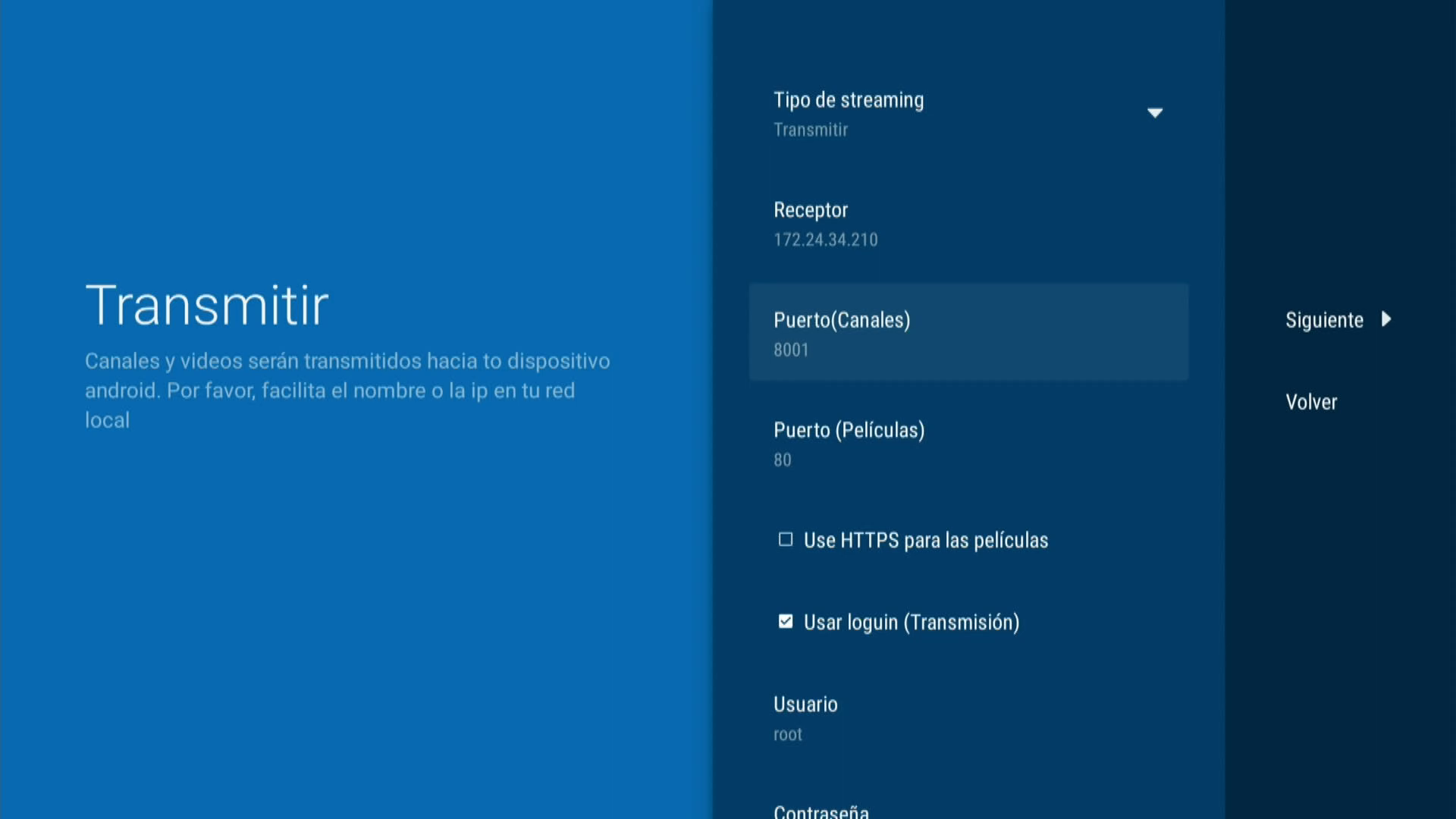 3. Ahora activamos usar login y en contraseña introducimos la contraseña de nuestro receptor y pulsamos en siguiente