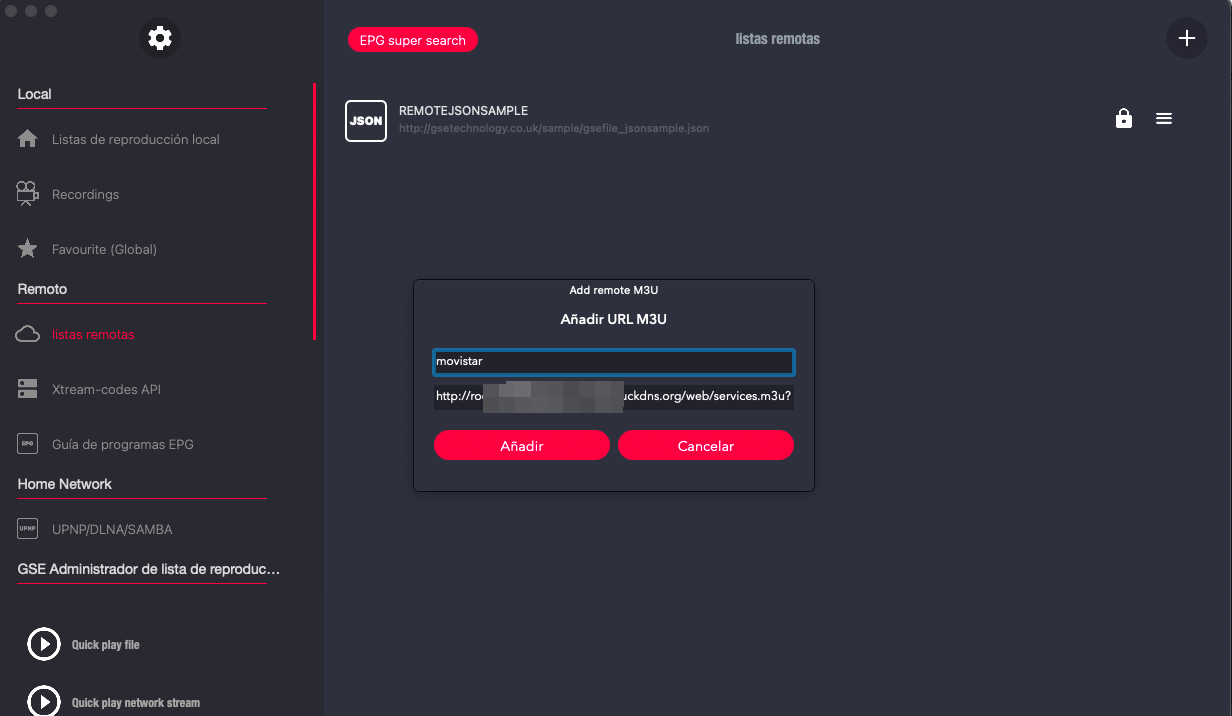 Por lo que a la url definitiva debemos añadirle usuario y pass del deco, y ya quedaria como se muestra: