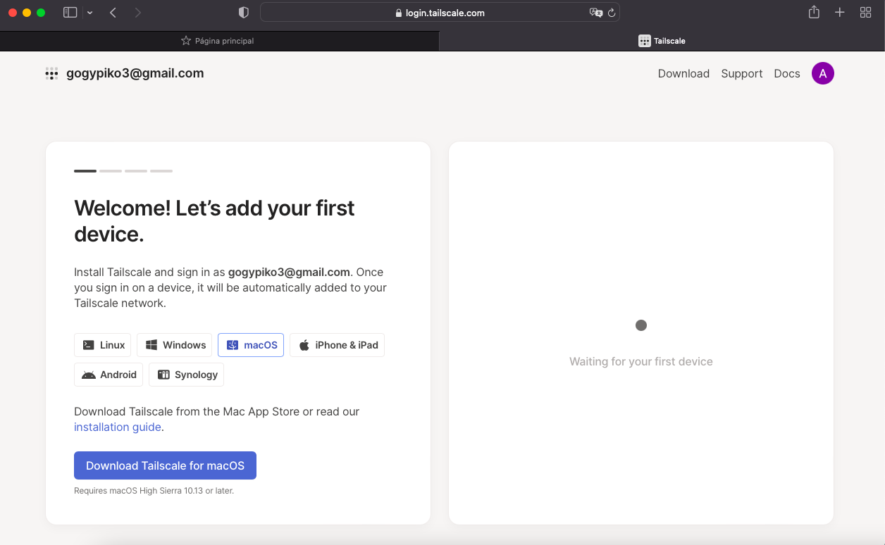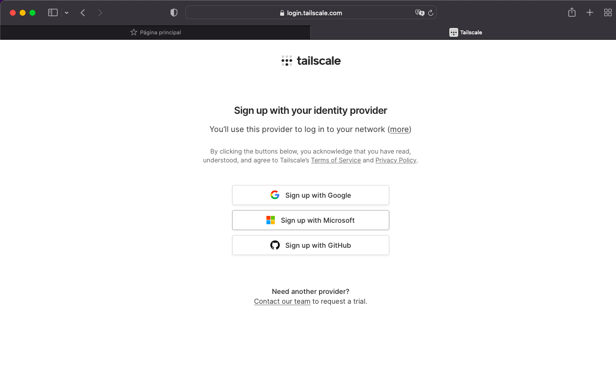 Como hemos comentado en primer lugar debemos crear cuenta en tailscale, que es bastante facil, simplemente accedemos a la web antes mencionada:
