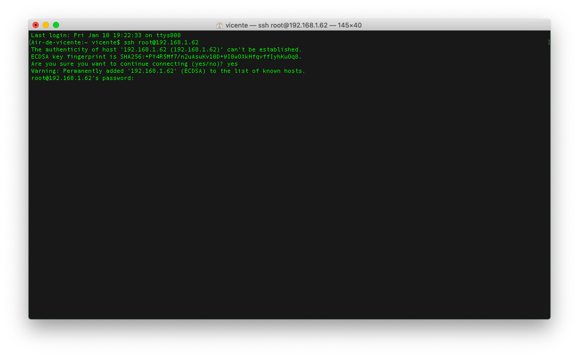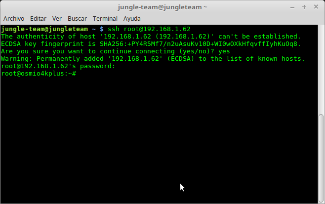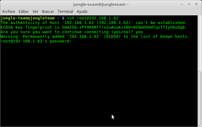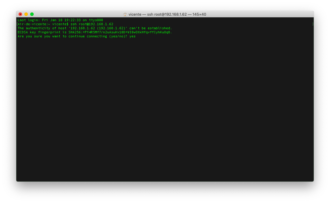 Cuando accedemos por primera vez a traves de ssh necesitamos aceptar rsakey introduciendo yes.
