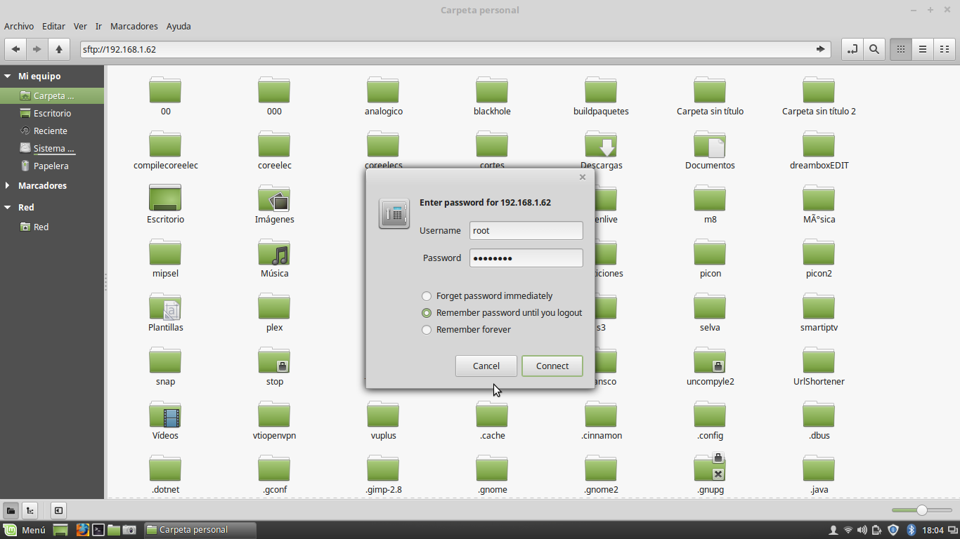 Ahora deberemos introducir usuario (root) y contraseña que tengamos asignada al receptor y ya accederemos al sistema de archivos del receptor