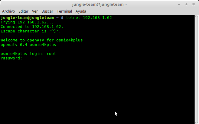 Dependiendo de la versión de nuestra imagen nos pedirá usuario (root) y contraseña que tengamos asignada al receptor o directamente accederemos sin usuario y password.