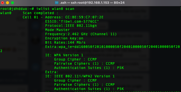 Ahora si realizamos por ejemplo un scan en la wlan por ejemplo por consola terminal observamos como nuestro receptor James Donkey solo es capaz de buscar la banda 2.4 ghz