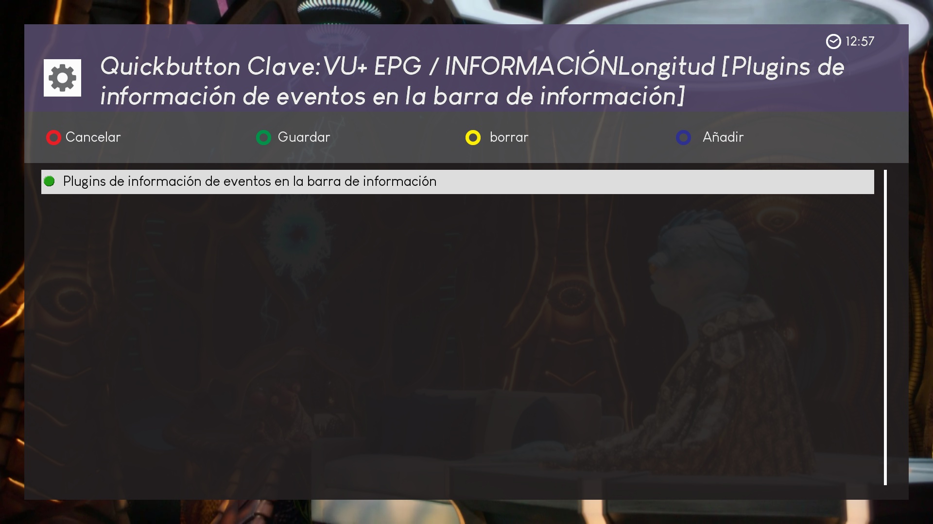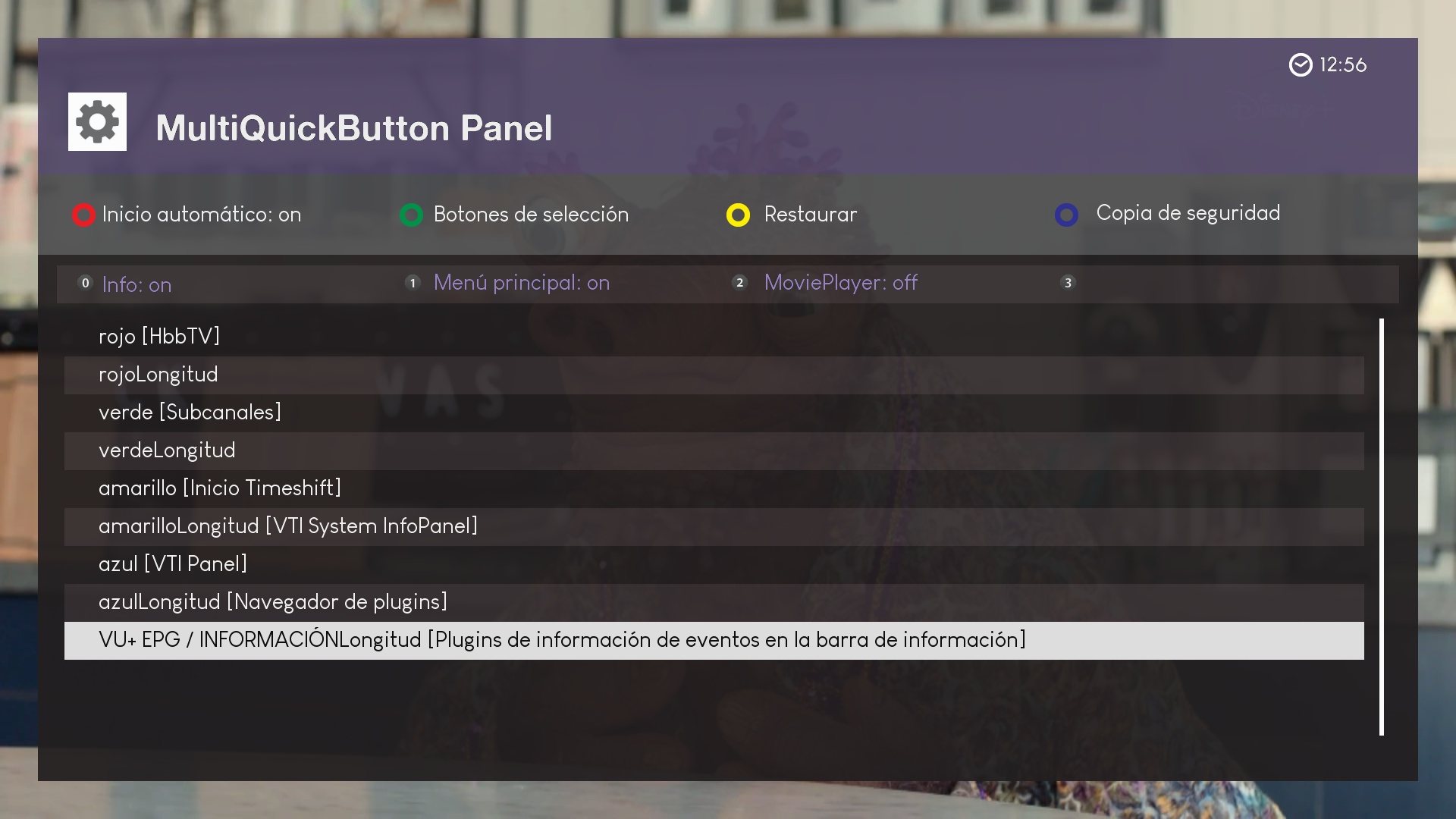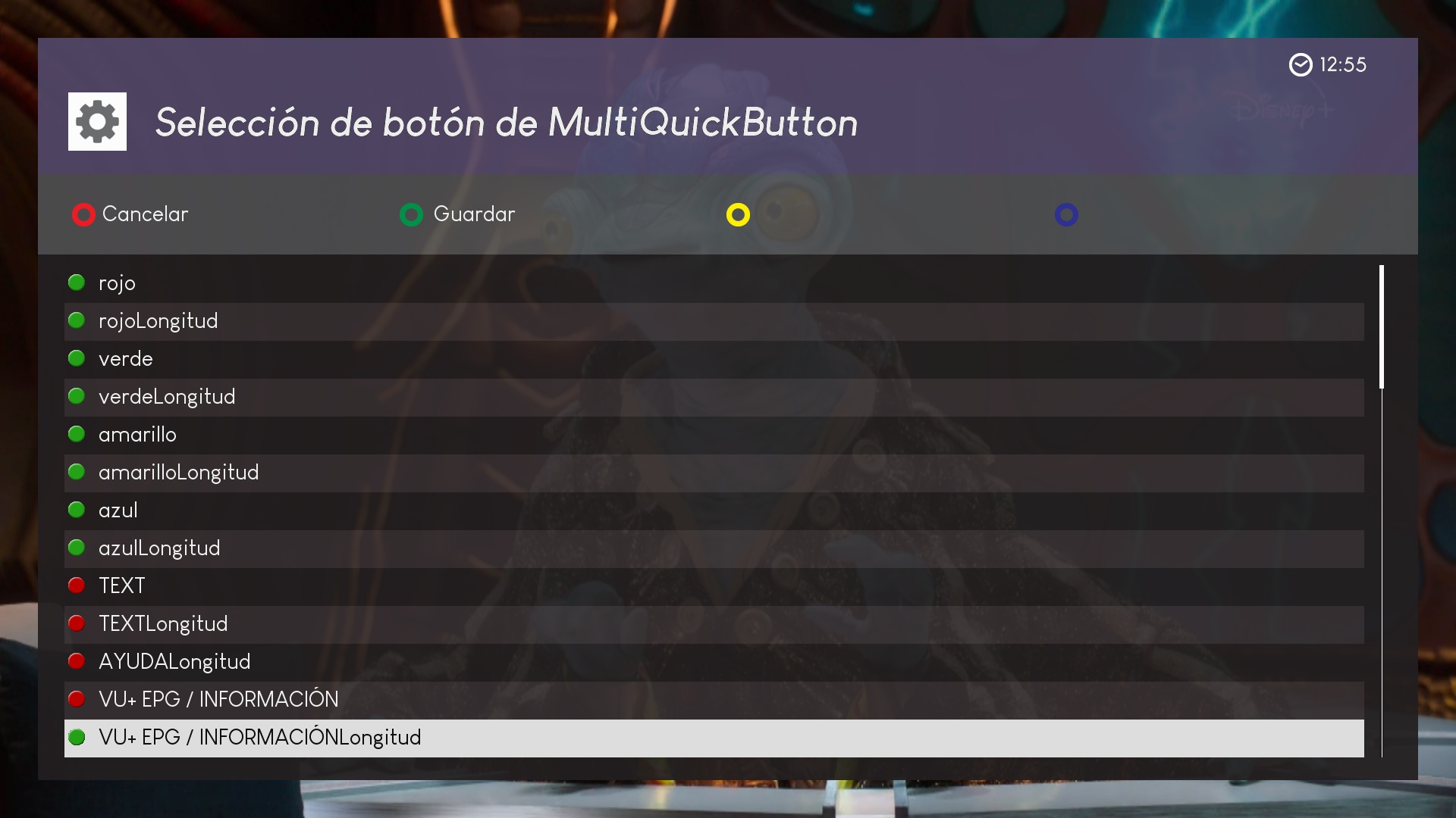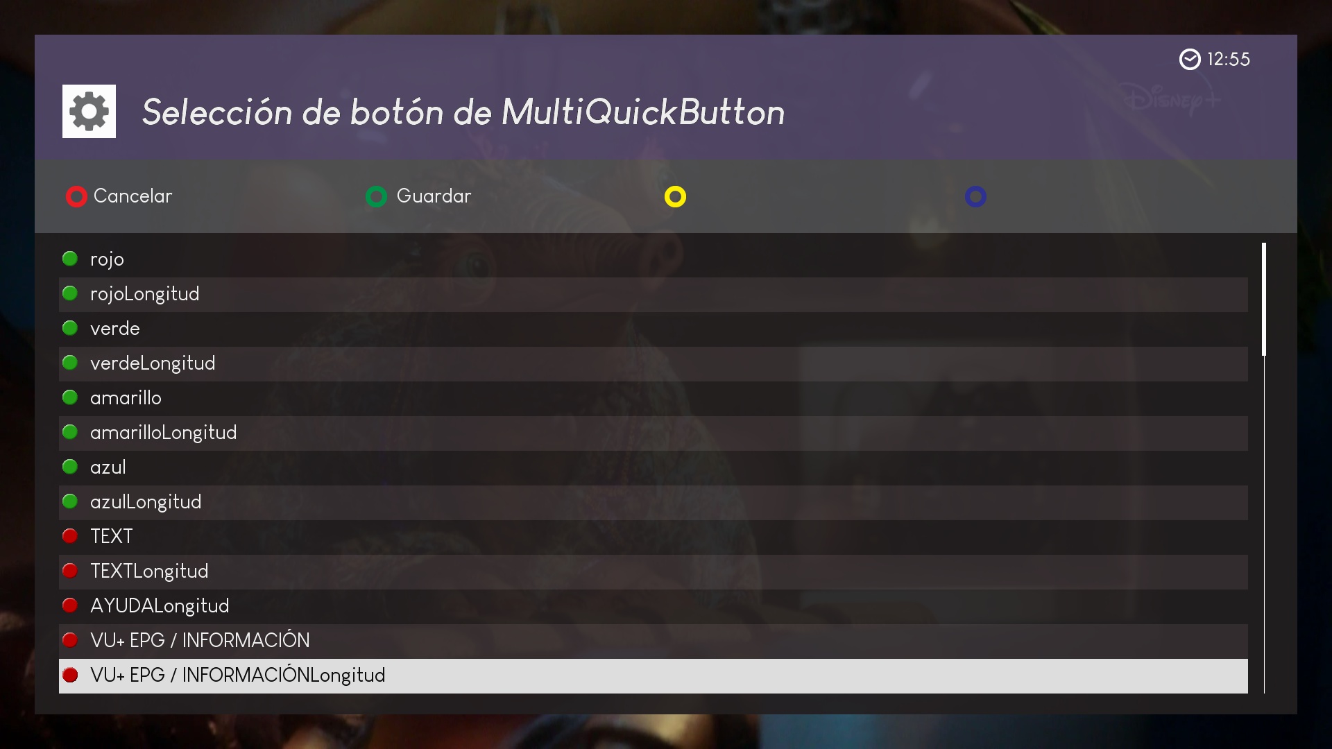 ahora los botones marcados en rojo podemos pulsar sobre ellos y se añadiran a la pagina principal para ser editados, en este ejemplo añadimos vu+epg longitud (pulsamiento prolongado sobre un boton)