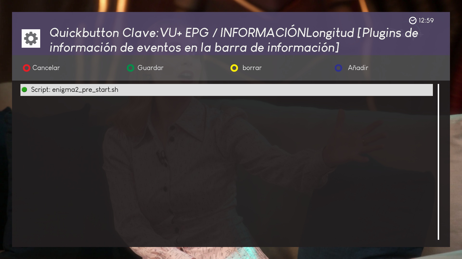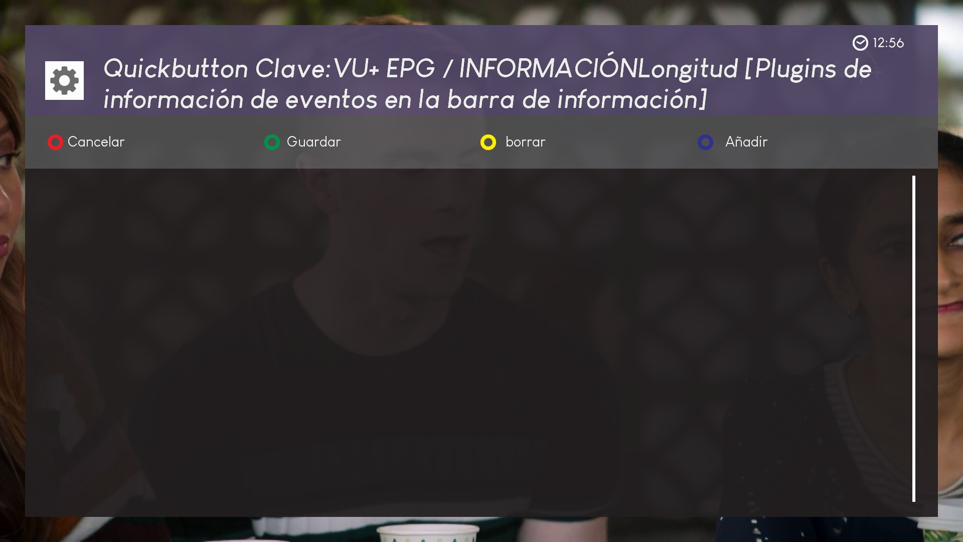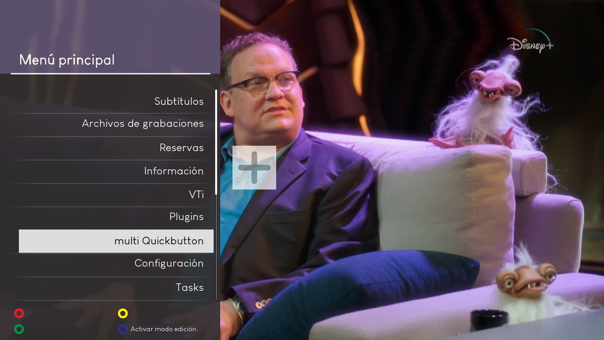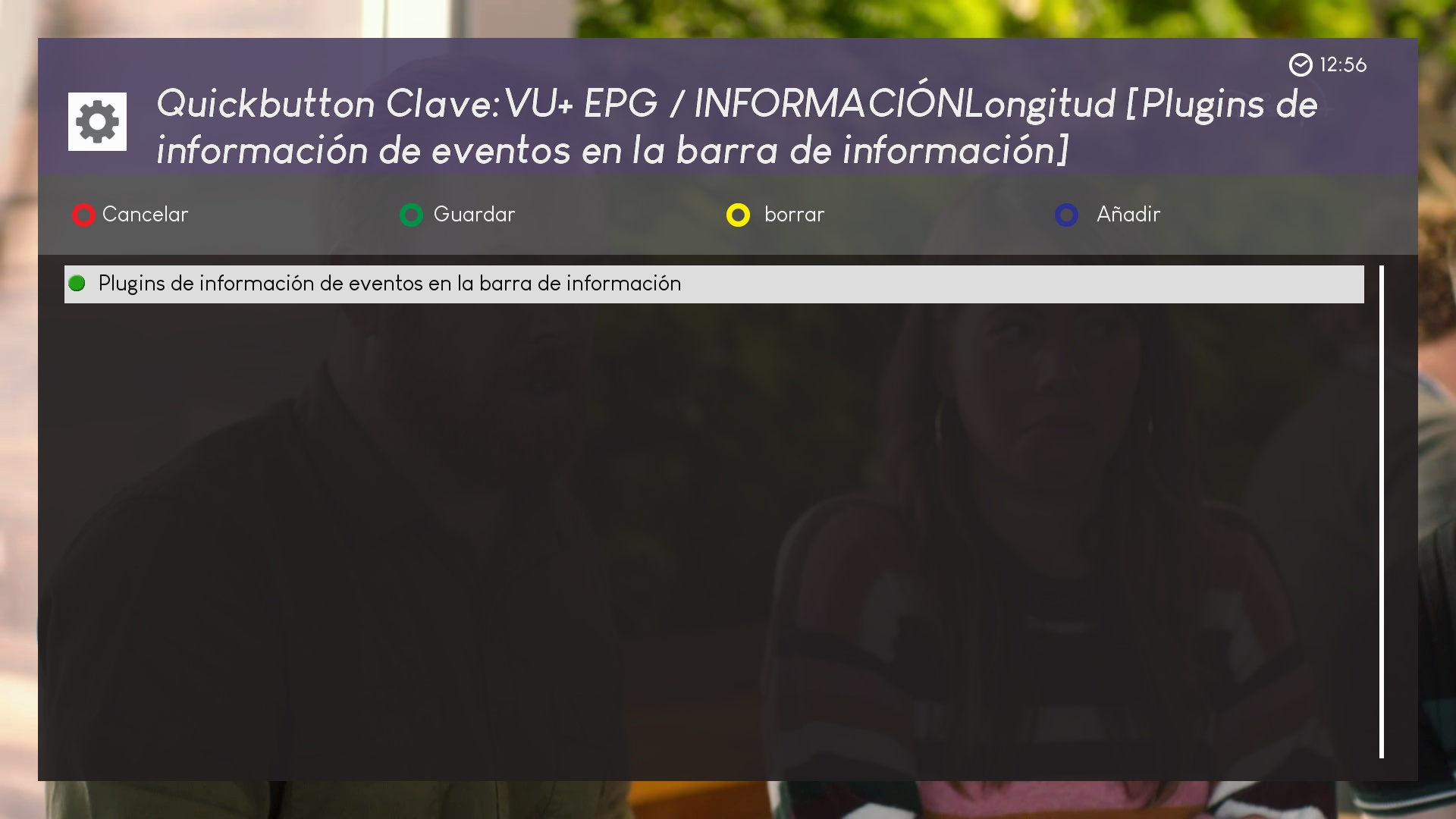 ahora los botones marcados en rojo podemos pulsar sobre ellos y se añadiran a la pagina principal para ser editados, en este ejemplo añadimos vu+epg longitud (pulsamiento prolongado sobre un boton)