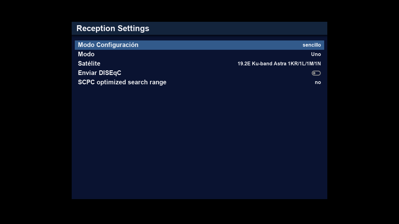 Seleccionamos configuracion del sintonizador