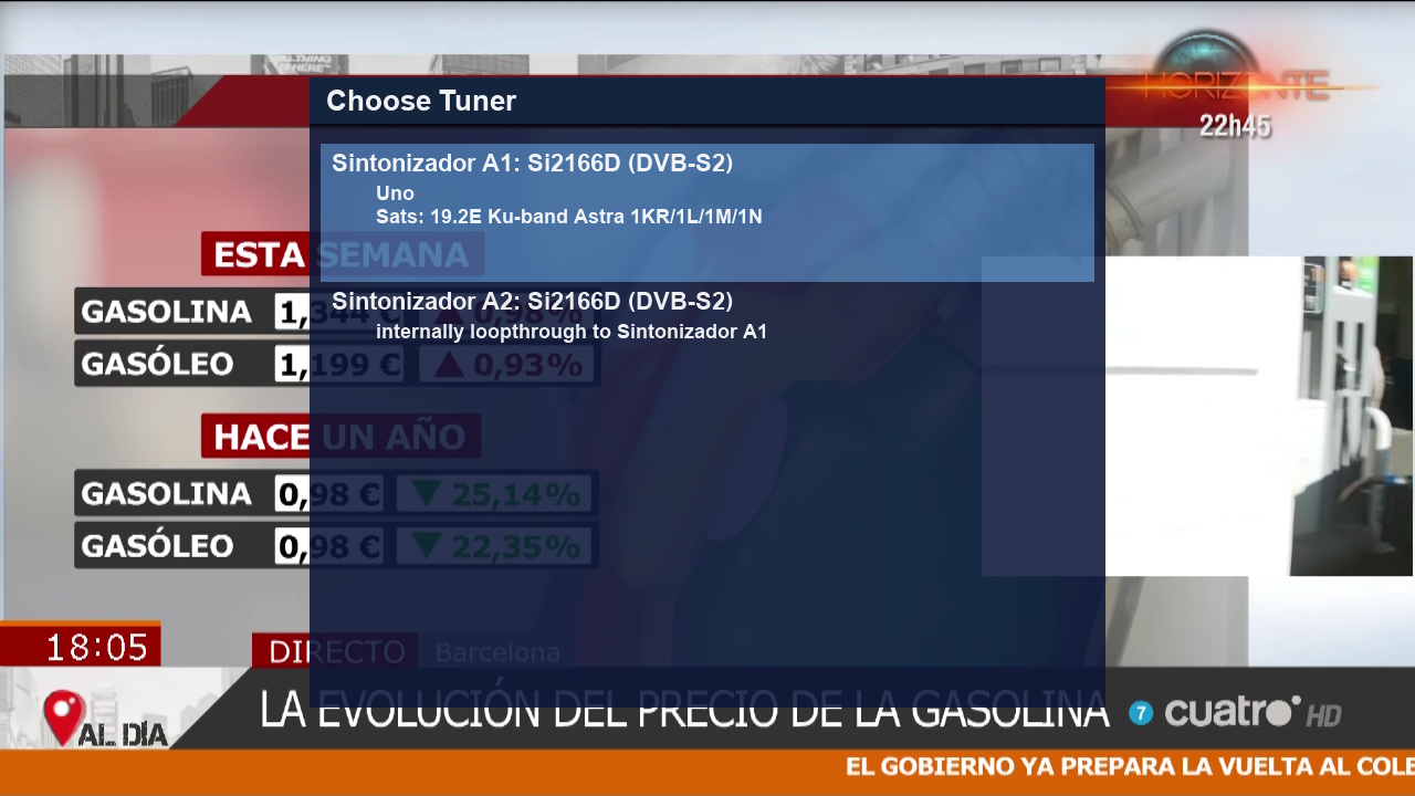 Y ahora por ejemplo realizamos streaming y podemos ver como los dos tuner entran en funcionamiento