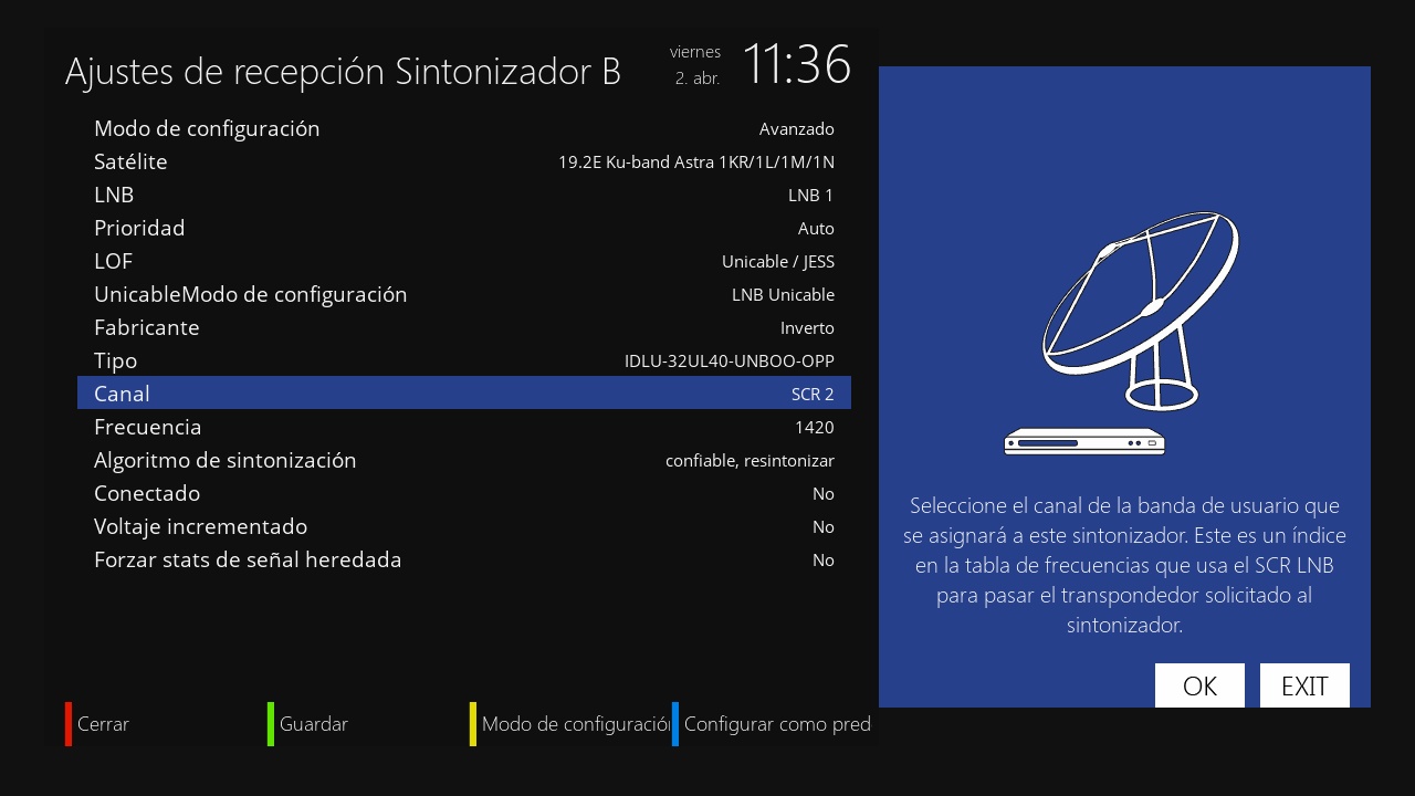En primer lugar debemos tener en cuenta que los dos tuner del James Donkey en la actualidad se configuran independiente, por lo que no se puede realizar ni loop interno ni externo ya que la conmutacion no se realiza estable, por lo que en este articulo vamos a tratar como realizar su configuración de cada tuner de manera independiente con lnb unicable que de esta manera si funcionan ambos tuner correctamente. En este caso lo vamos a realizar con LNB unicable inverto II.
