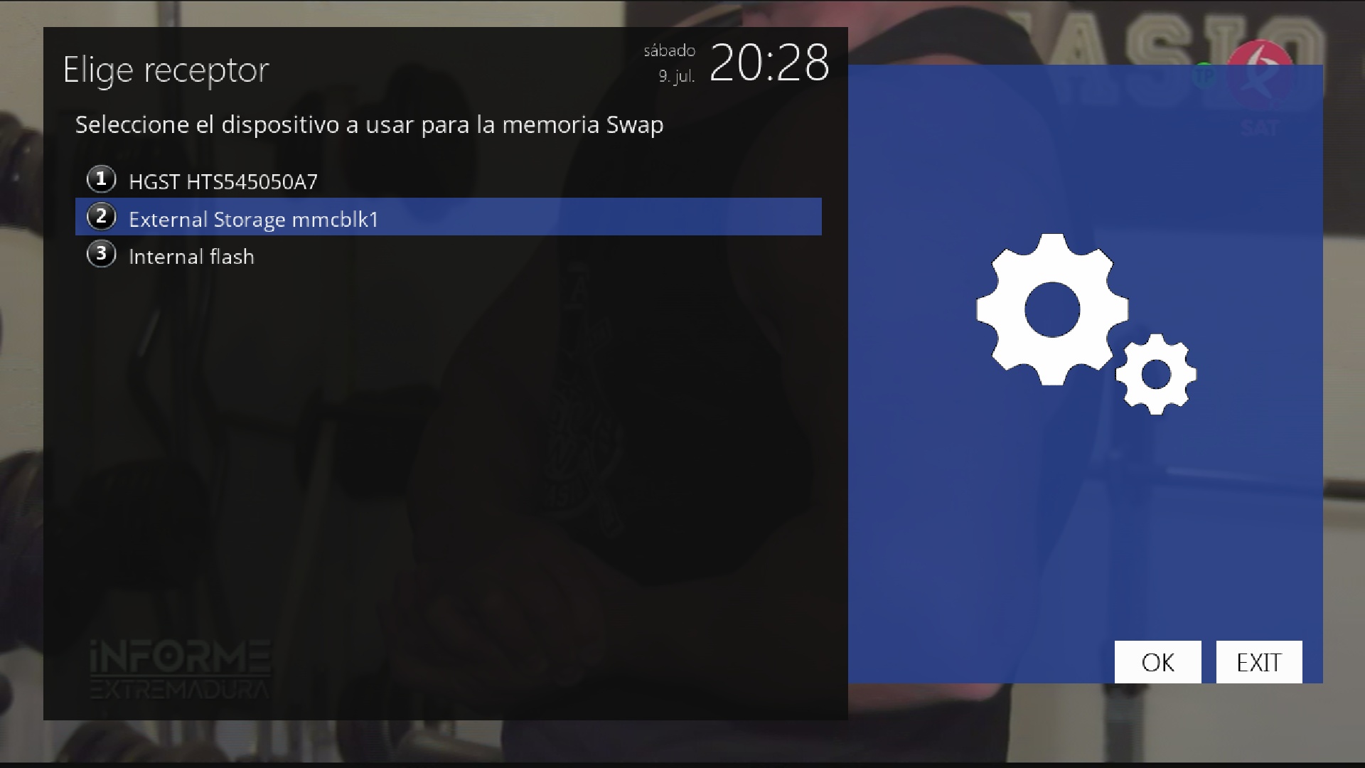 Como hemos comentado desde Openatv podemos crear facilmente desde su menu una particion Swap, para ello pulsamos sobre: