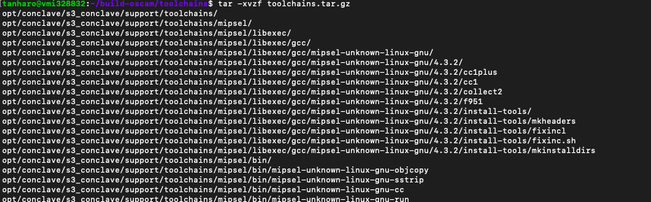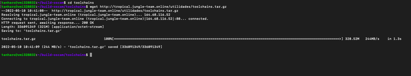 Una vez descargado observaremos que se nos ha descargado el archivo toolchains, ahora lo descomprimimos para ello ejecutamos el siguiente comando: