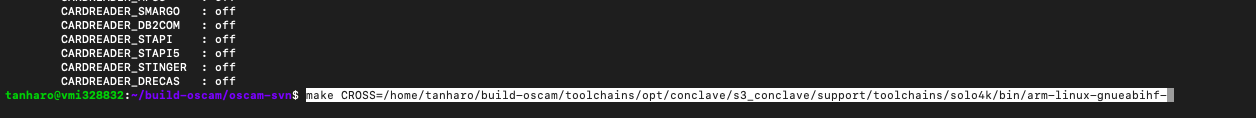 make CROSS=/home/tanharo/build-oscam/toolchains/opt/conclave/s3_conclave/support/toolchains/solo4k/bin/arm-linux-gnueabihf-
