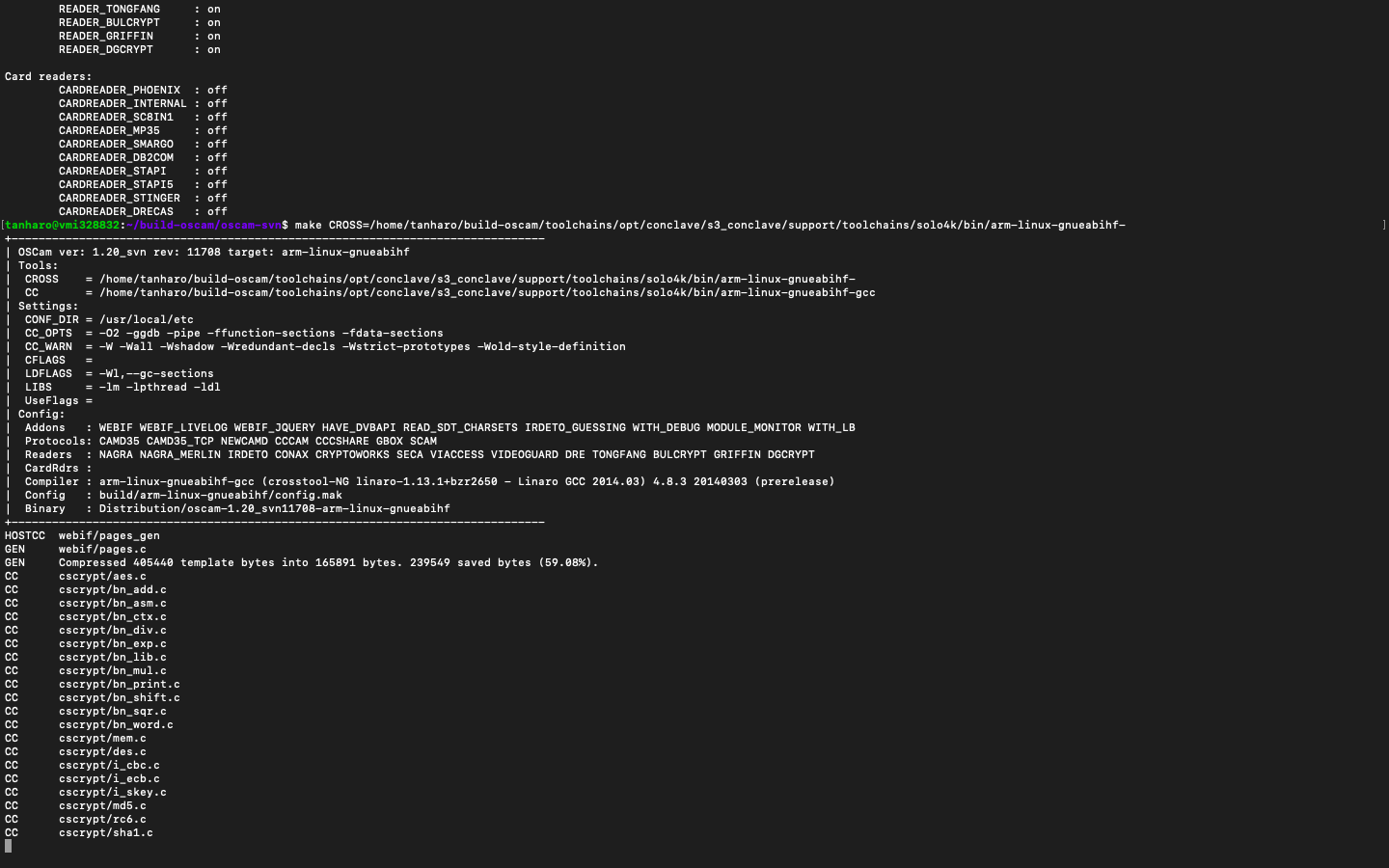 Ahora vamos ya a realizar la compilacion del binario de oscam para la arquitectura de receptor que deseemos, antes de nada nos vamos a familiarizar con el comando que sera: