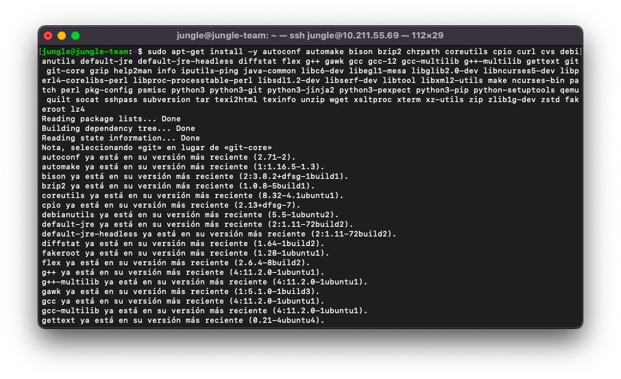 Debe instalar paquetes esenciales en su maquina de compilación. El siguiente comando instala los paquetes de host basados en una distribución de Ubuntu, en este caso con Ubuntu Server o Debian.