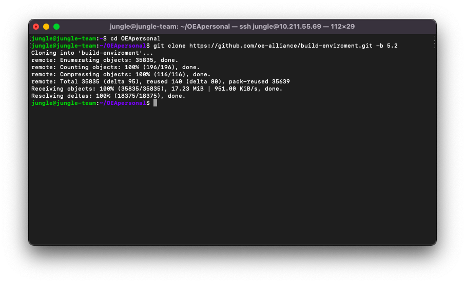 Una vez que hemos completado las instrucciones de configuración para su máquina, debe obtener una copia del repositorio de OE-ALLIANCE de compilación. Use los siguientes comandos para clonar el repositorio.
