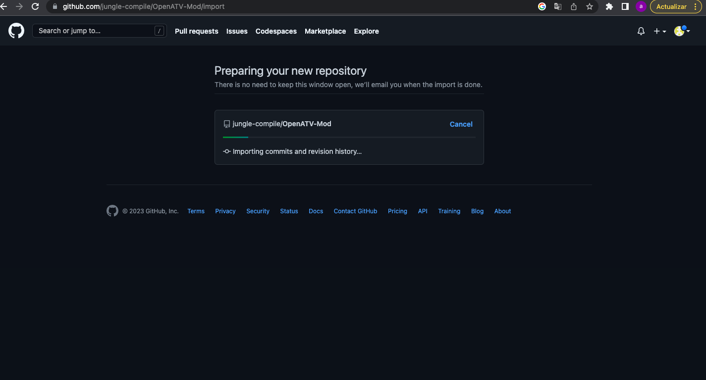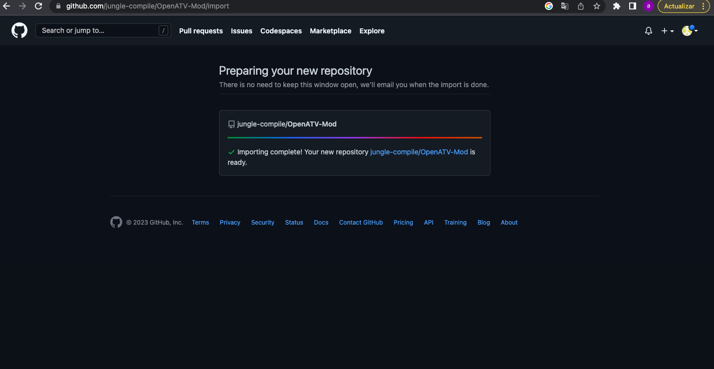 Al finalizar ya tendremos el repositorio openatv clonado en nuestro git