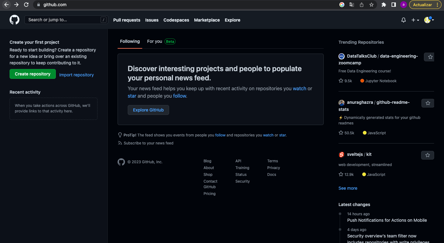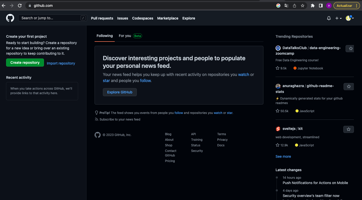 3. Ahora vamos a nuestra cuenta github y damos a importar repositorio
