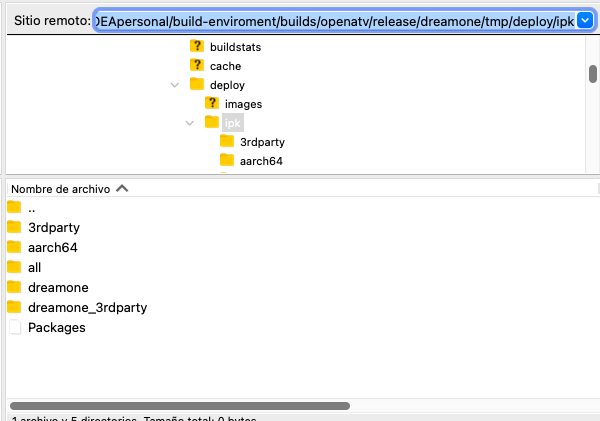 Una vez que ha finalizado la compilacion correctamente el directorio feed lo encontraremos en OEApersonal/build-enviroment/builds/openatv/release/dreamone/tmp/deploy/ipk