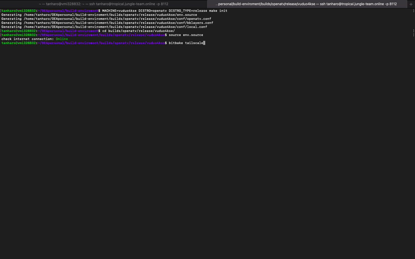 bitbake <<nombre de la receta del paquete a compilar>> , en este ejemplo para tailscale