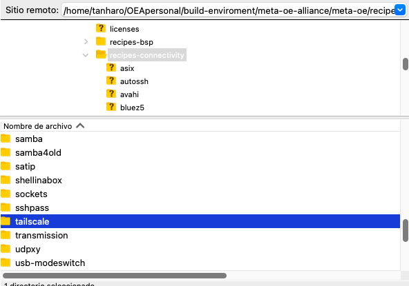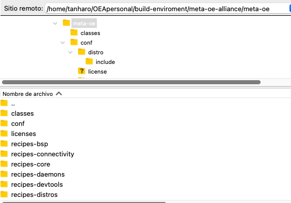 En este caso las recetas de los paquetes estan dentro de la capa meta-oe donde observaremos distintas capas que contienen las recetas para los distintos paquetes