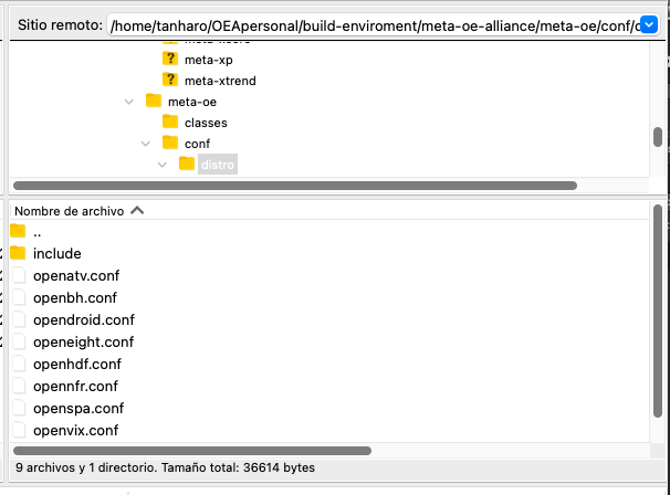 Dentro de la capa distro tendremos los archivos de configuracion de cada tipo imagen enigma2 que se halla dentro de OE-ALLIANCE