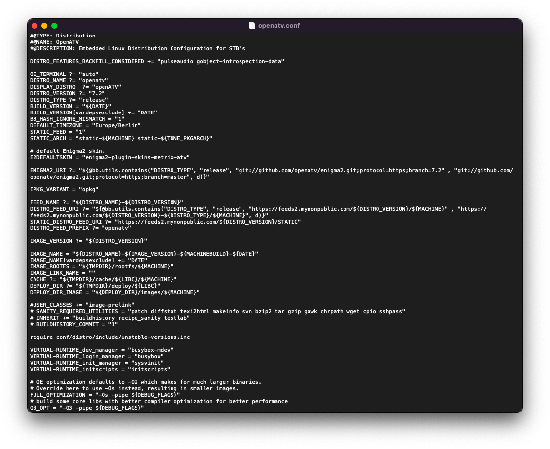 - OpenEmbedded: es un framework que provee un conjunto de metadatos formado por las capas básicas, recetas y clases necesarias para poder crear una distribución enigma2.