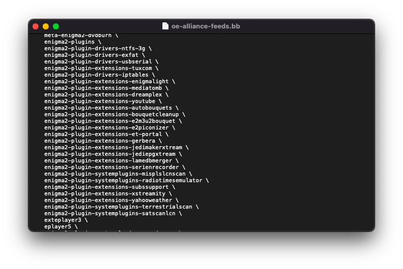 En la receta oe-alliance-feeds.bb podemos añadir o eliminar paquetes que se van a compilar o no: