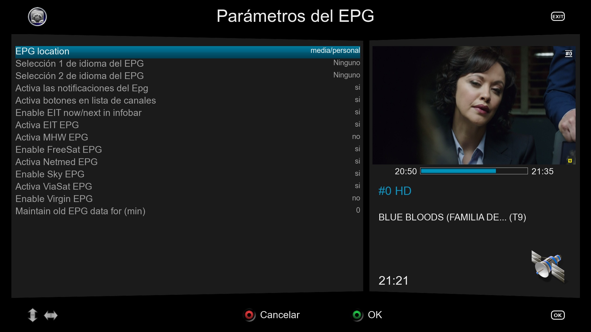 1. Pulsamos en boton azul + boton rojo para acceder a parametros EPG