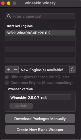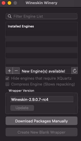 Ahora deberemos instalar engine y el envoltorio wrapper, para el envoltorio simplemente pulsamos en update.