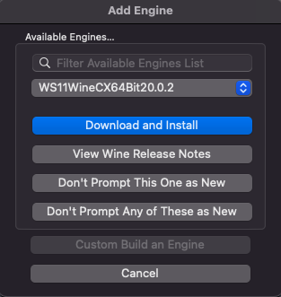 Para instalar el engine simplemente pulsamos sobre el simbolo + seleccionamos el engine y luego pulsamos sobre download and install