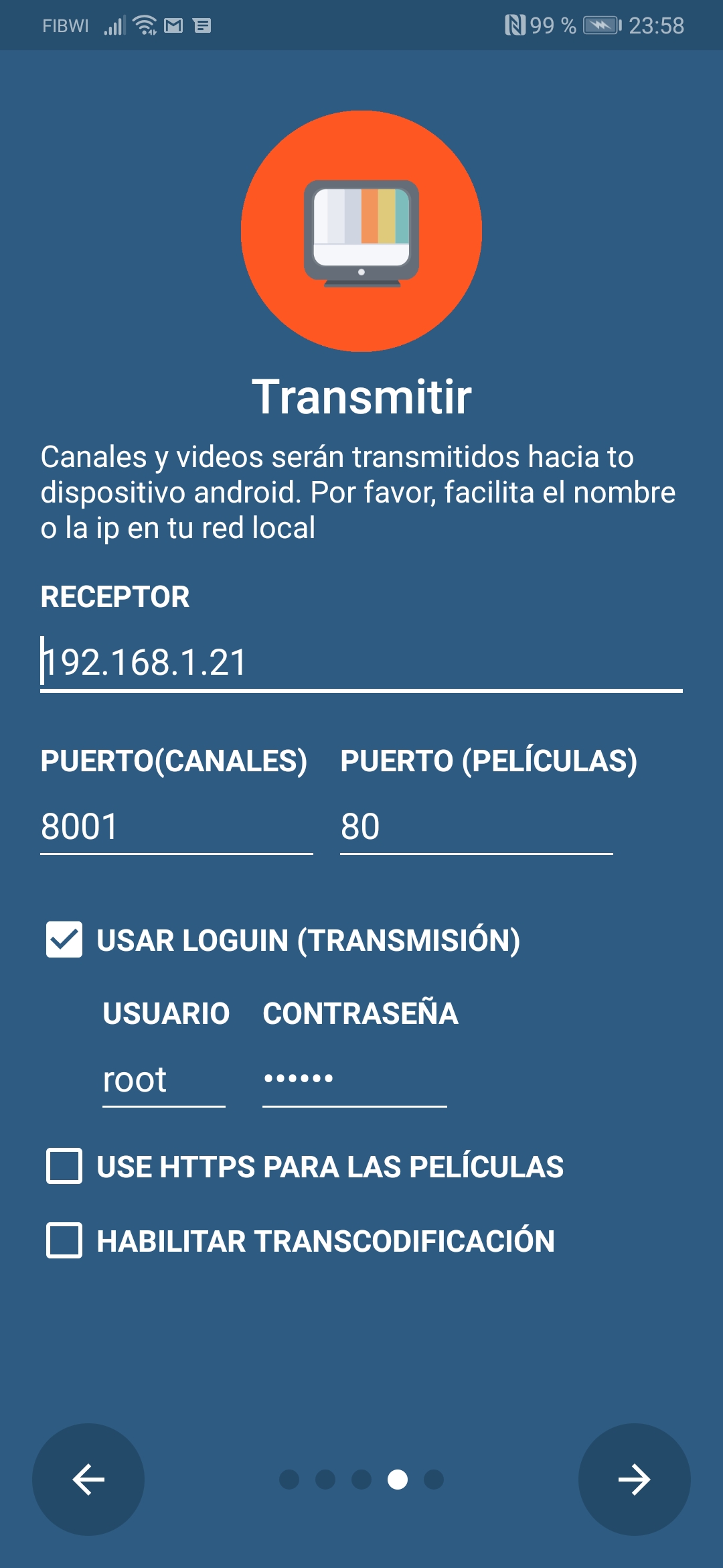 - Puerto canales por defecto dejamos 8001 o cambiamos por 8002 si deseamos hacer transcoding, en el caso de haber cambiado los puertos streaming introducimos los que tengamos configurados en el receptor