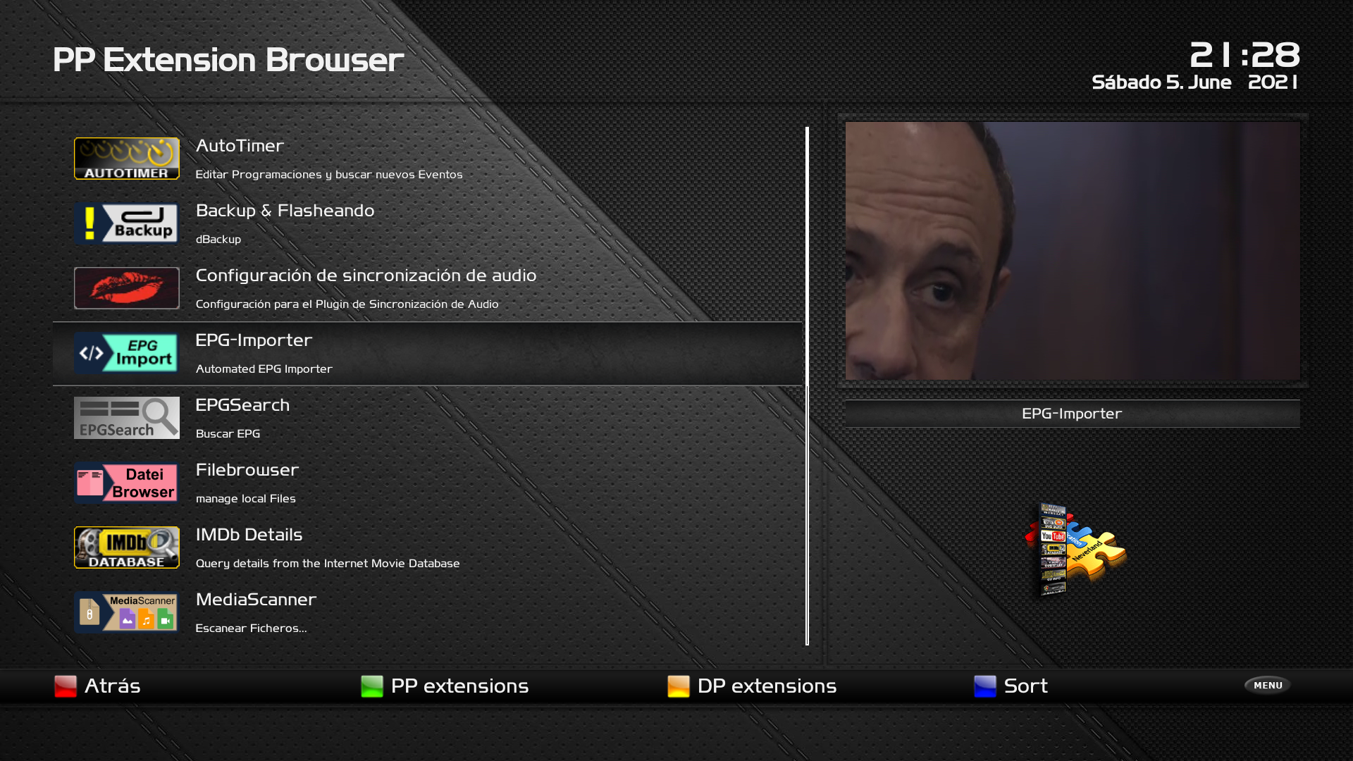 1. Pulsamos en menu + plugins y seleccionamos epg import