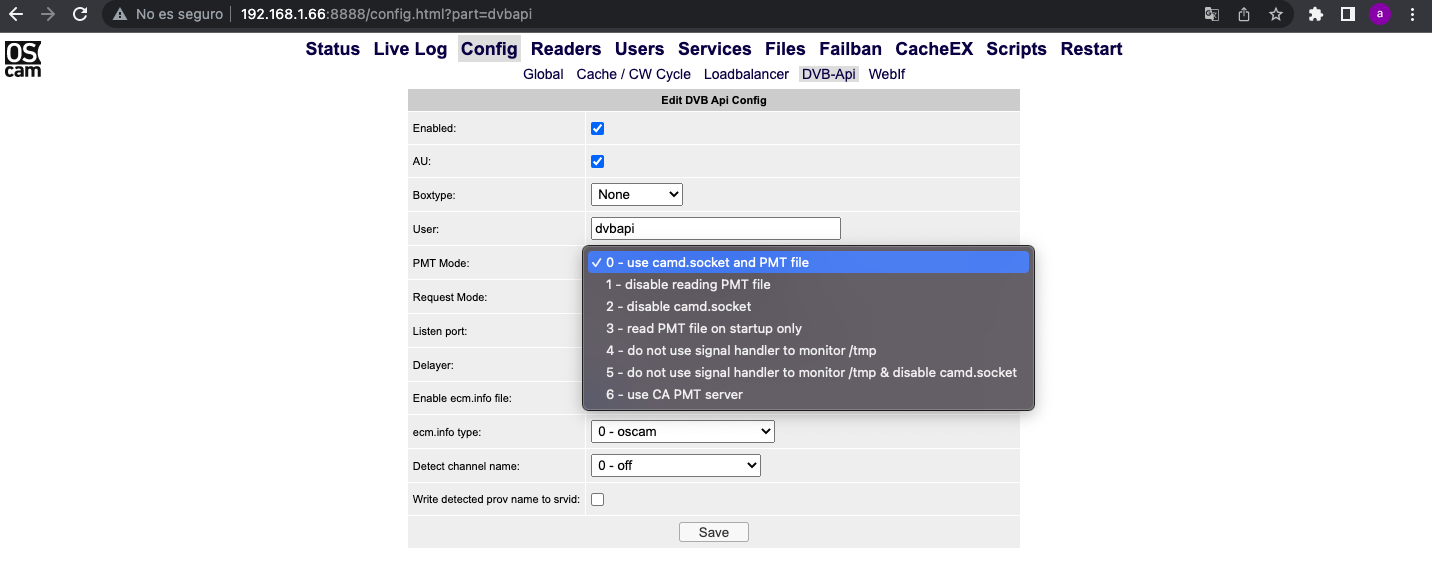 pmt mode es uno de los parametros disponibles en la emuladora Oscam, que su utilidad es indicarle a oscam el tipo de interfaz que usa el receptor para obtener los datos de las tablas PMT de un transponedor.